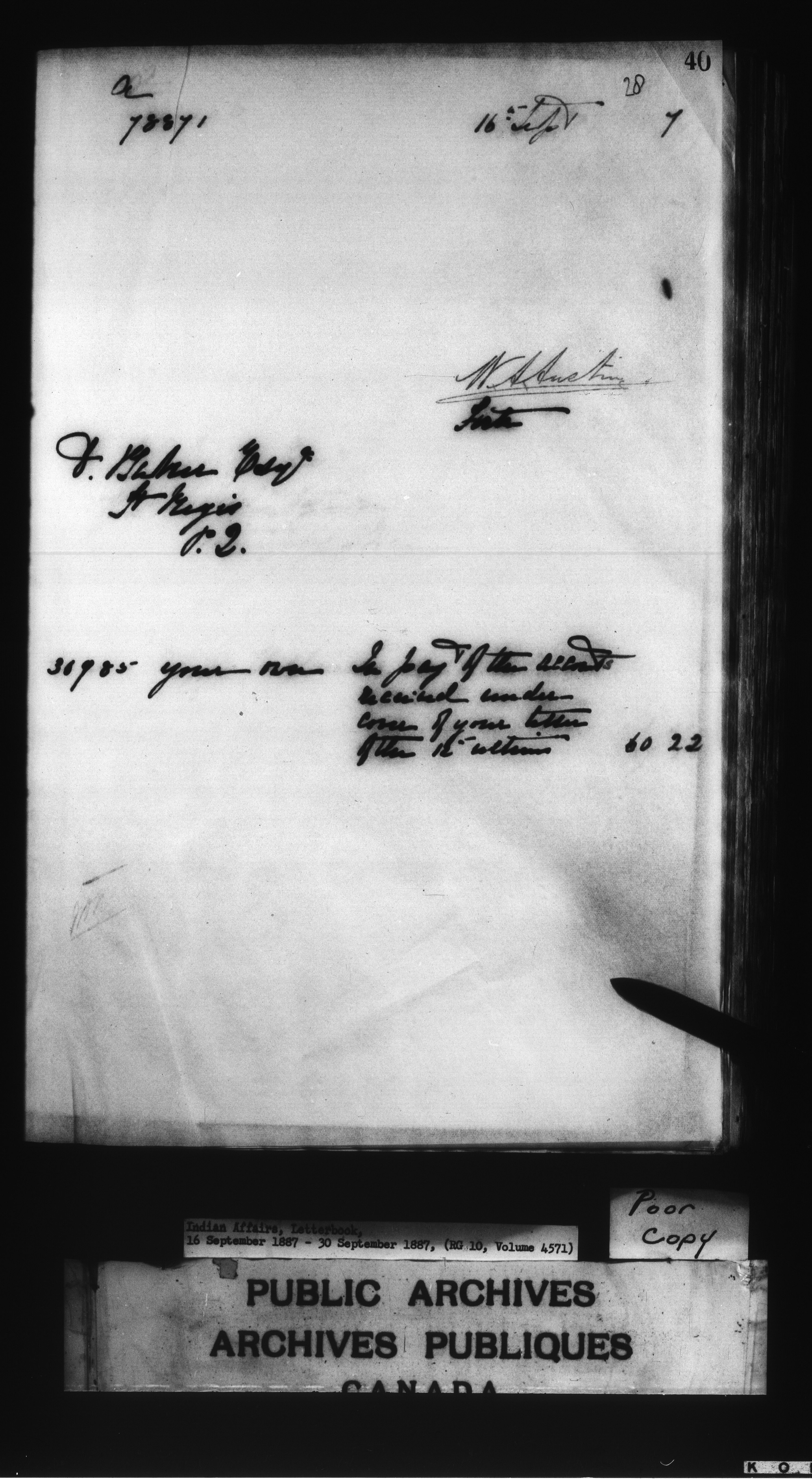 Department of Indian Affairs : Letterbooks of out-going correspondence relating to the administration of Indian Affairs in both eastern and western Canada, 1871-1920 - 7674