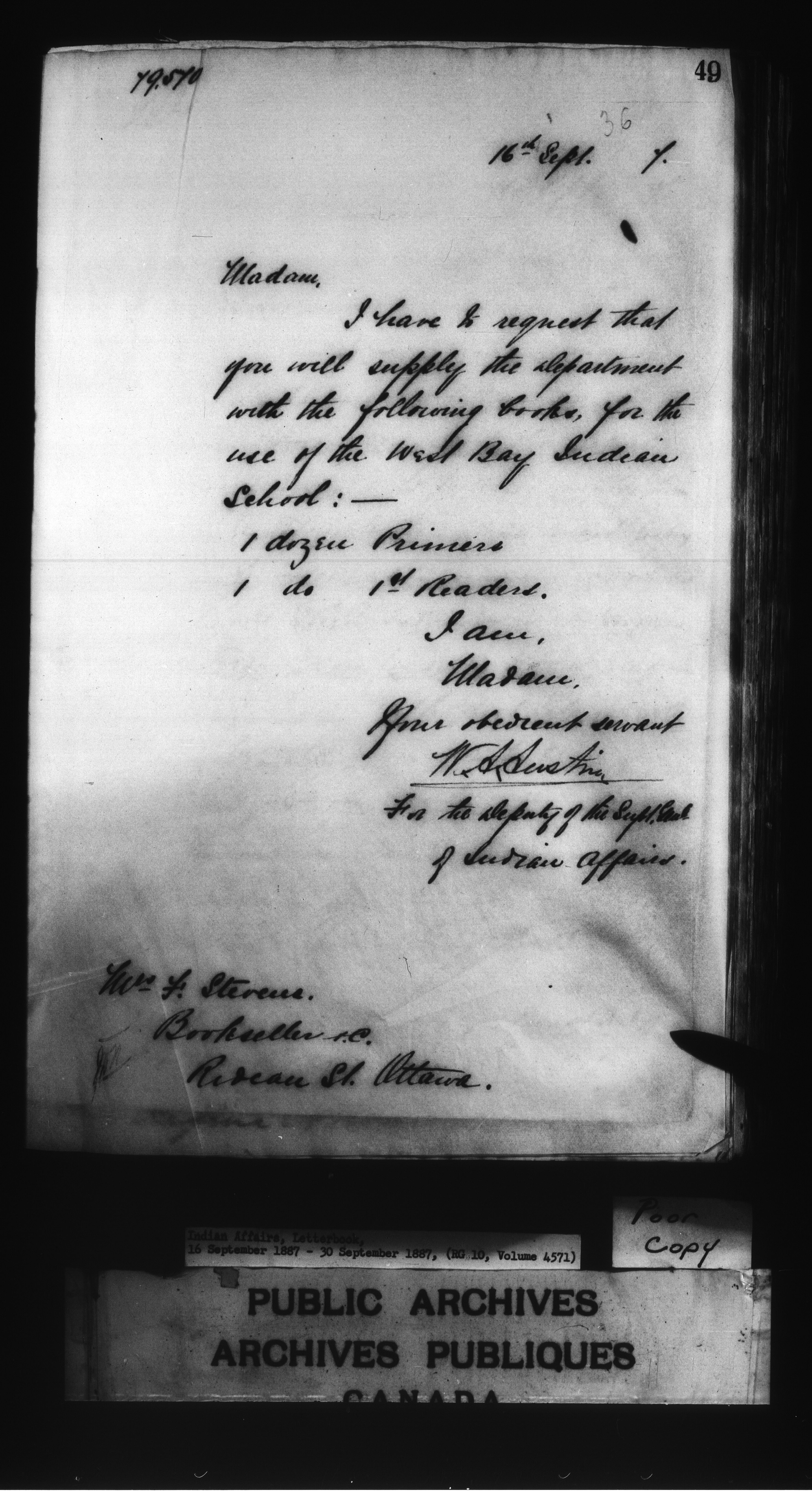 Department of Indian Affairs : Letterbooks of out-going correspondence relating to the administration of Indian Affairs in both eastern and western Canada, 1871-1920 - 7674