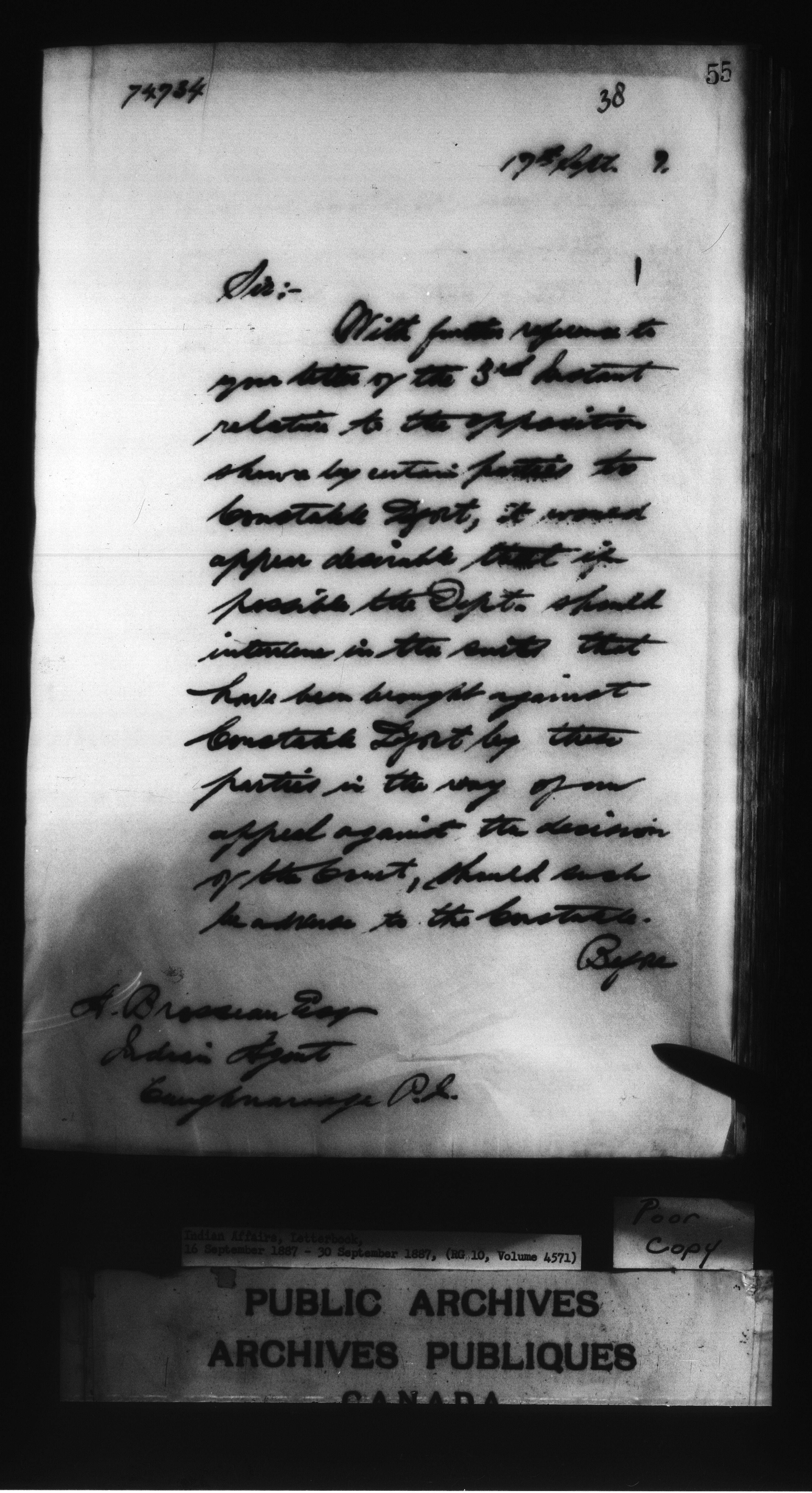 Department of Indian Affairs : Letterbooks of out-going correspondence relating to the administration of Indian Affairs in both eastern and western Canada, 1871-1920 - 7674