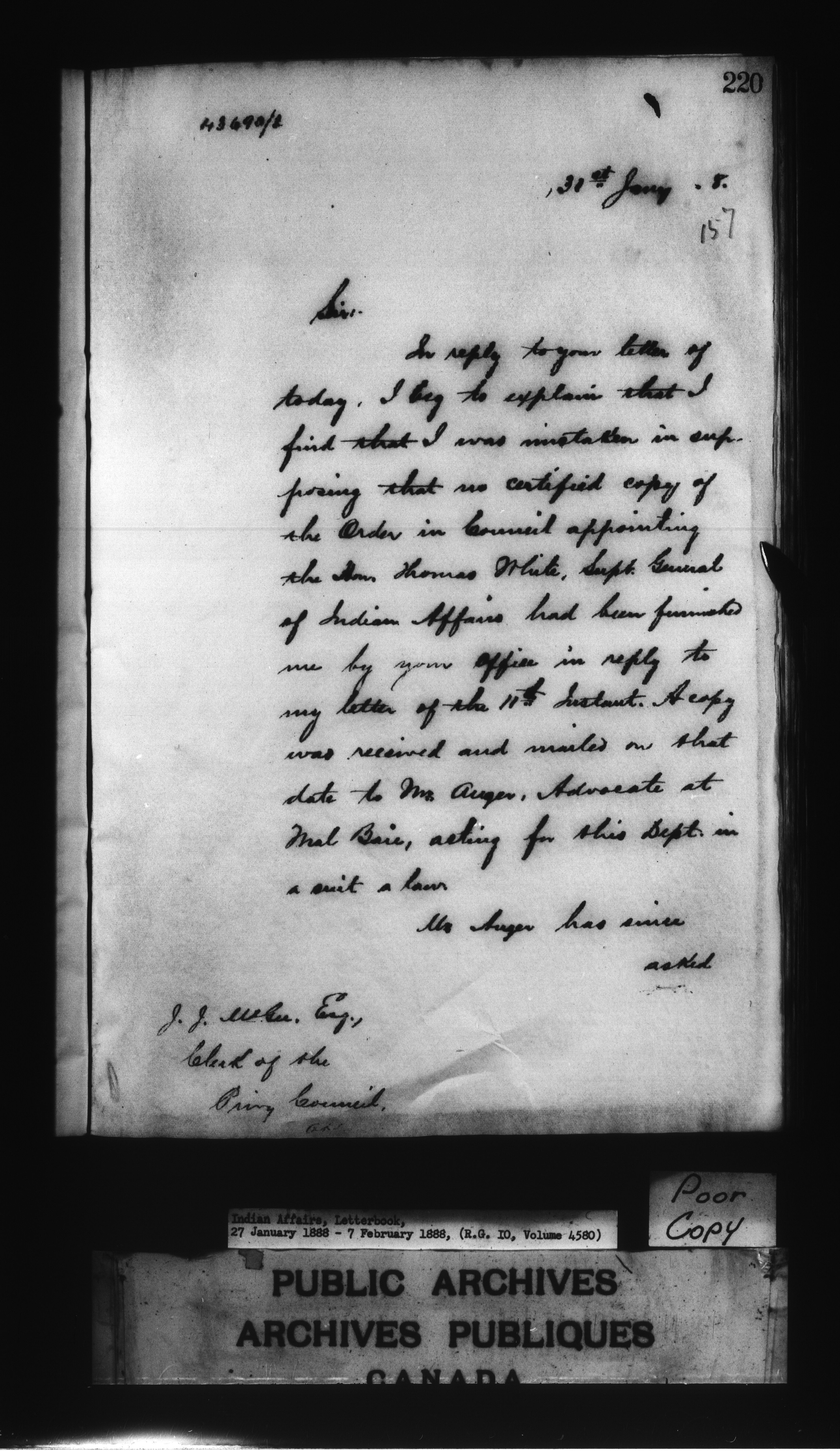 Department of Indian Affairs : Letterbooks of out-going correspondence relating to the administration of Indian Affairs in both eastern and western Canada, 1871-1920 - 7678