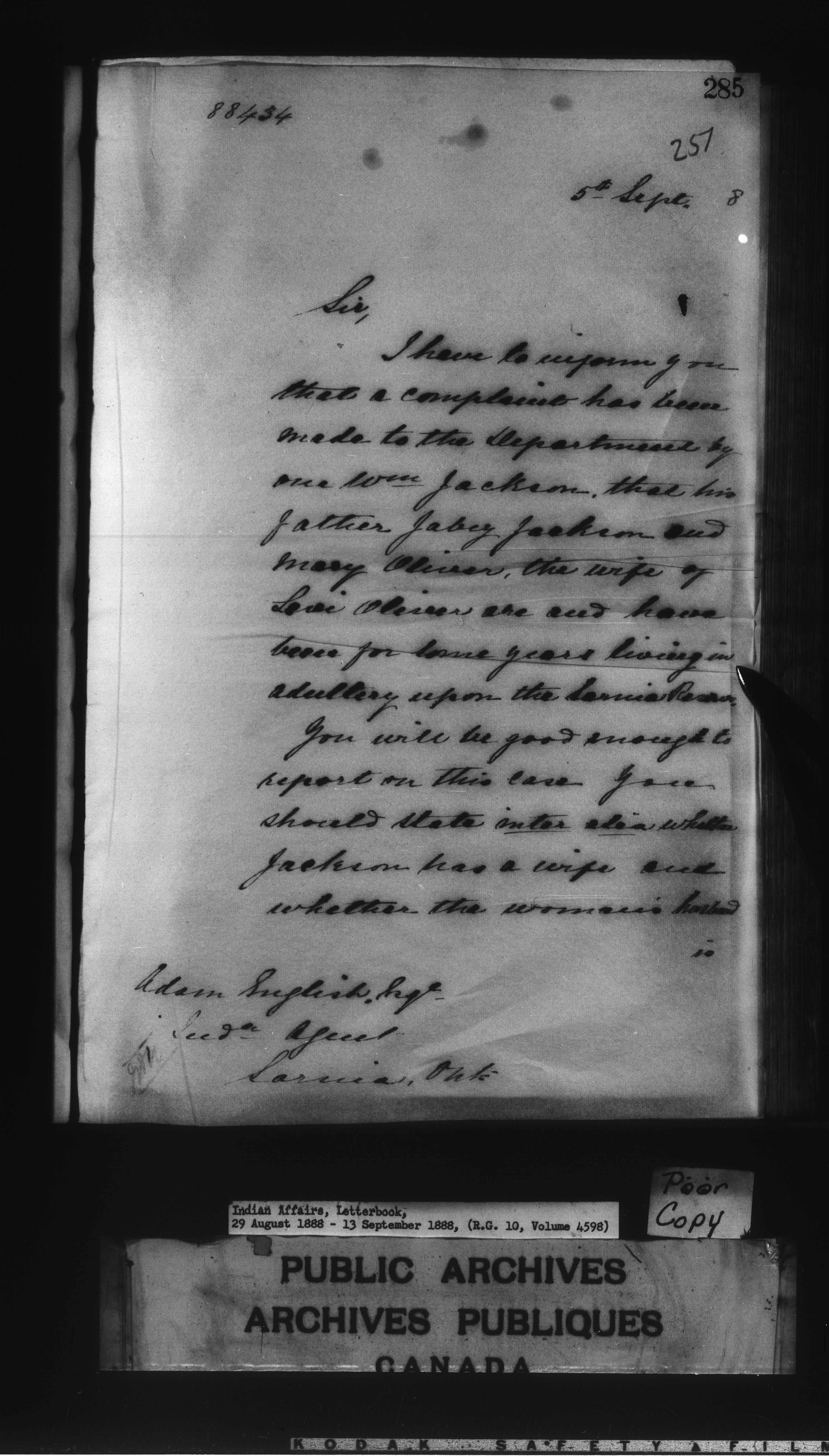 Department of Indian Affairs : Letterbooks of out-going correspondence relating to the administration of Indian Affairs in both eastern and western Canada, 1871-1920 - 7689
