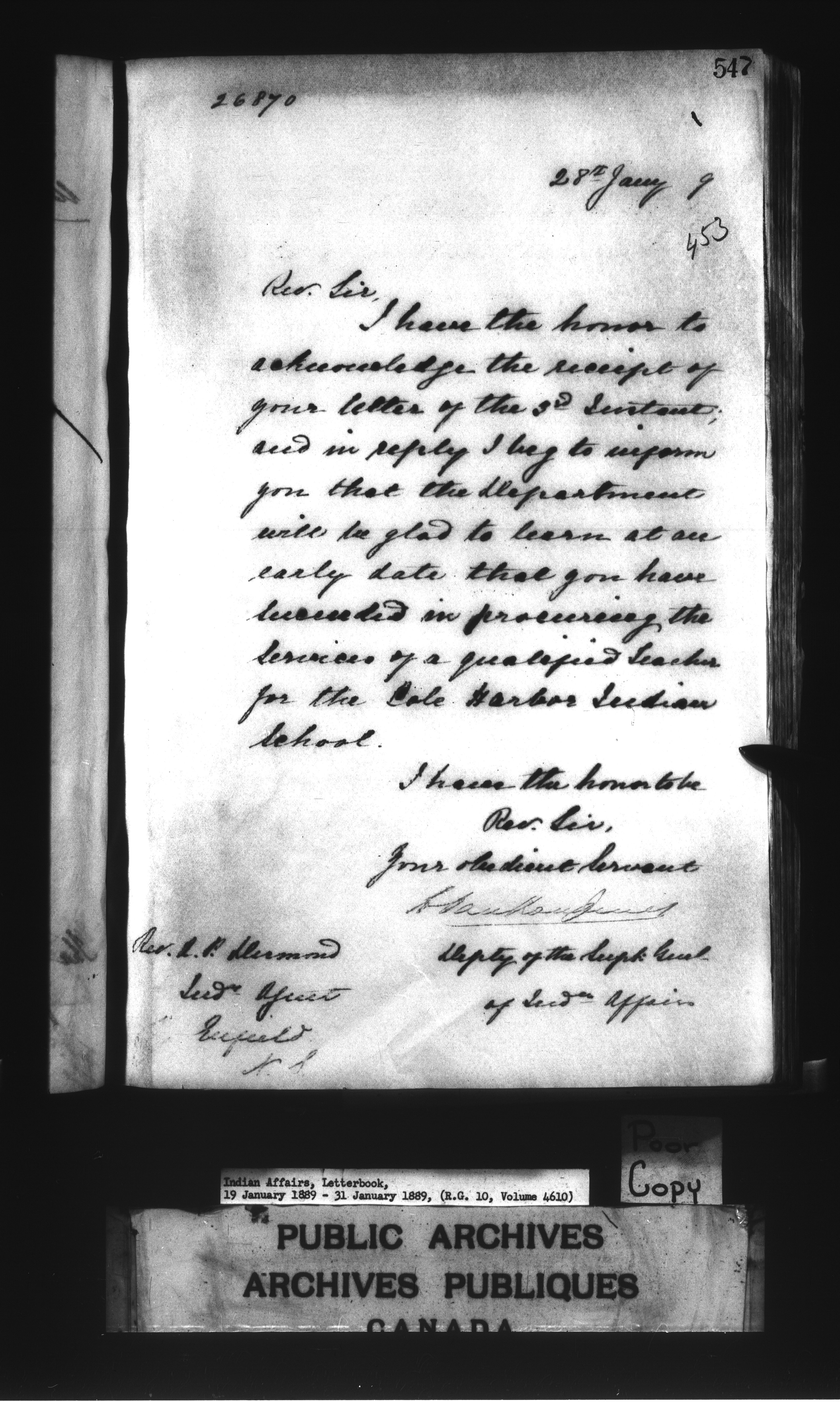 Department of Indian Affairs : Letterbooks of out-going correspondence relating to the administration of Indian Affairs in both eastern and western Canada, 1871-1920 - 7695