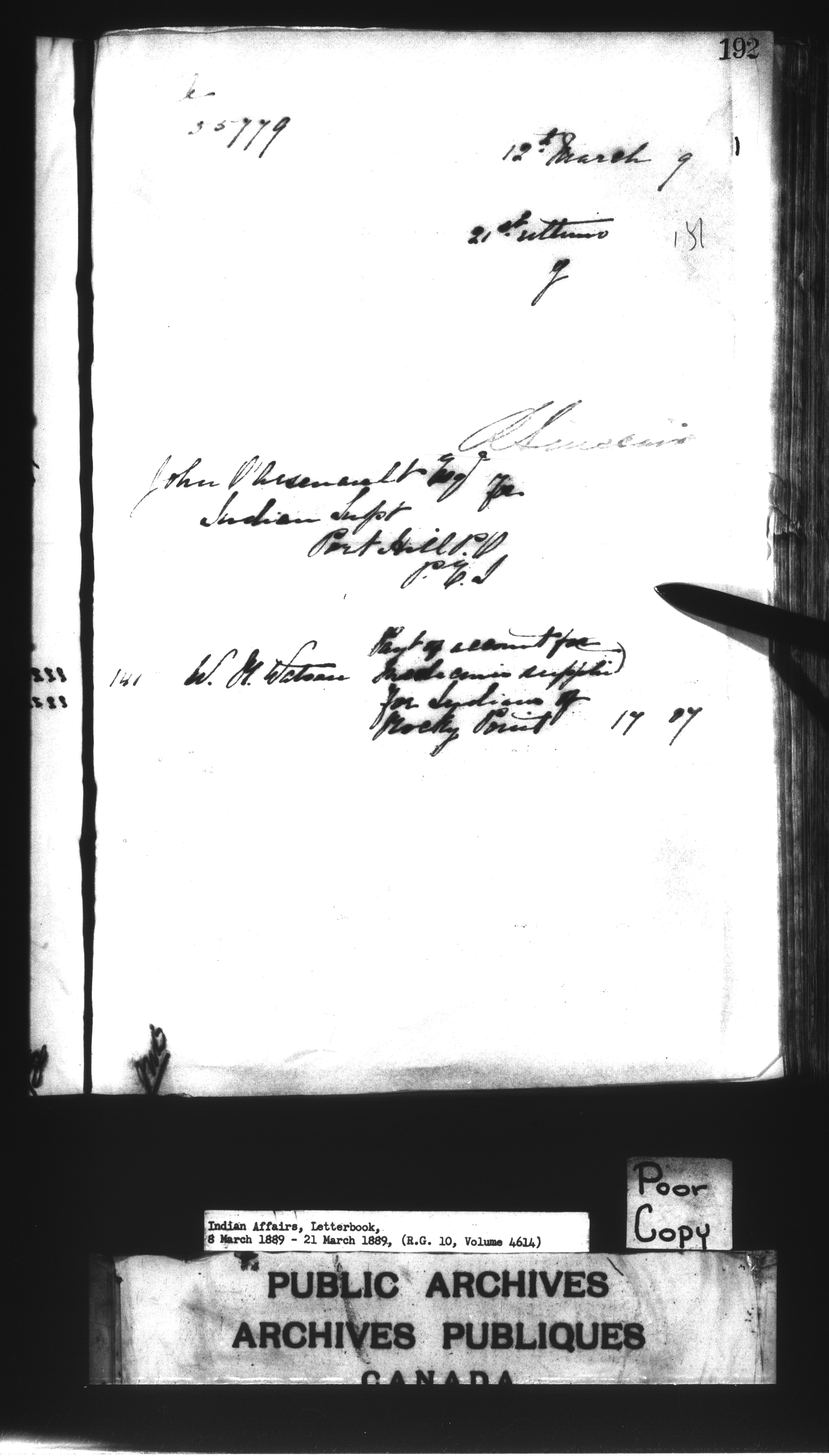 Department of Indian Affairs : Letterbooks of out-going correspondence relating to the administration of Indian Affairs in both eastern and western Canada, 1871-1920 - 7697
