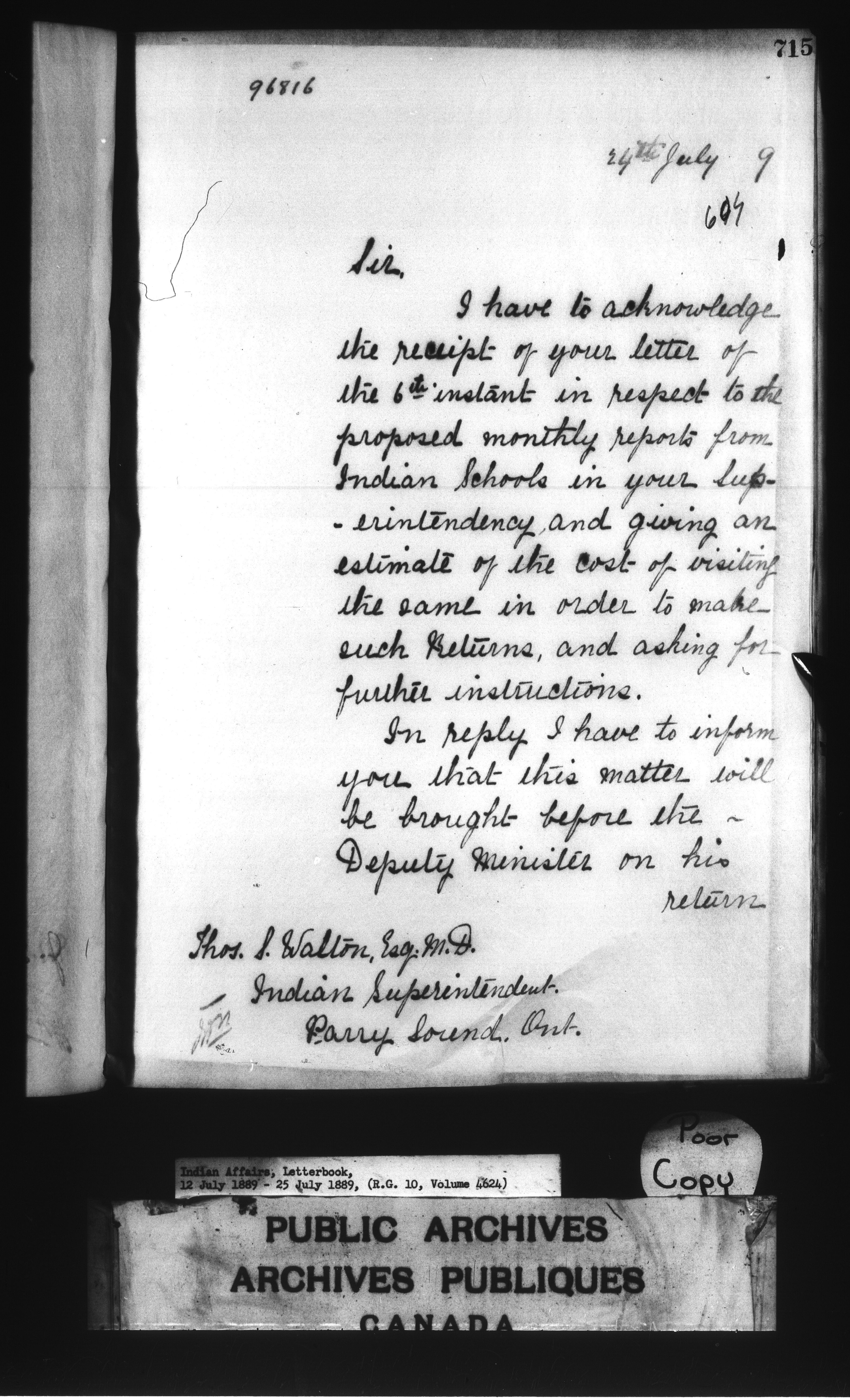Department of Indian Affairs : Letterbooks of out-going correspondence relating to the administration of Indian Affairs in both eastern and western Canada, 1871-1920 - 7703