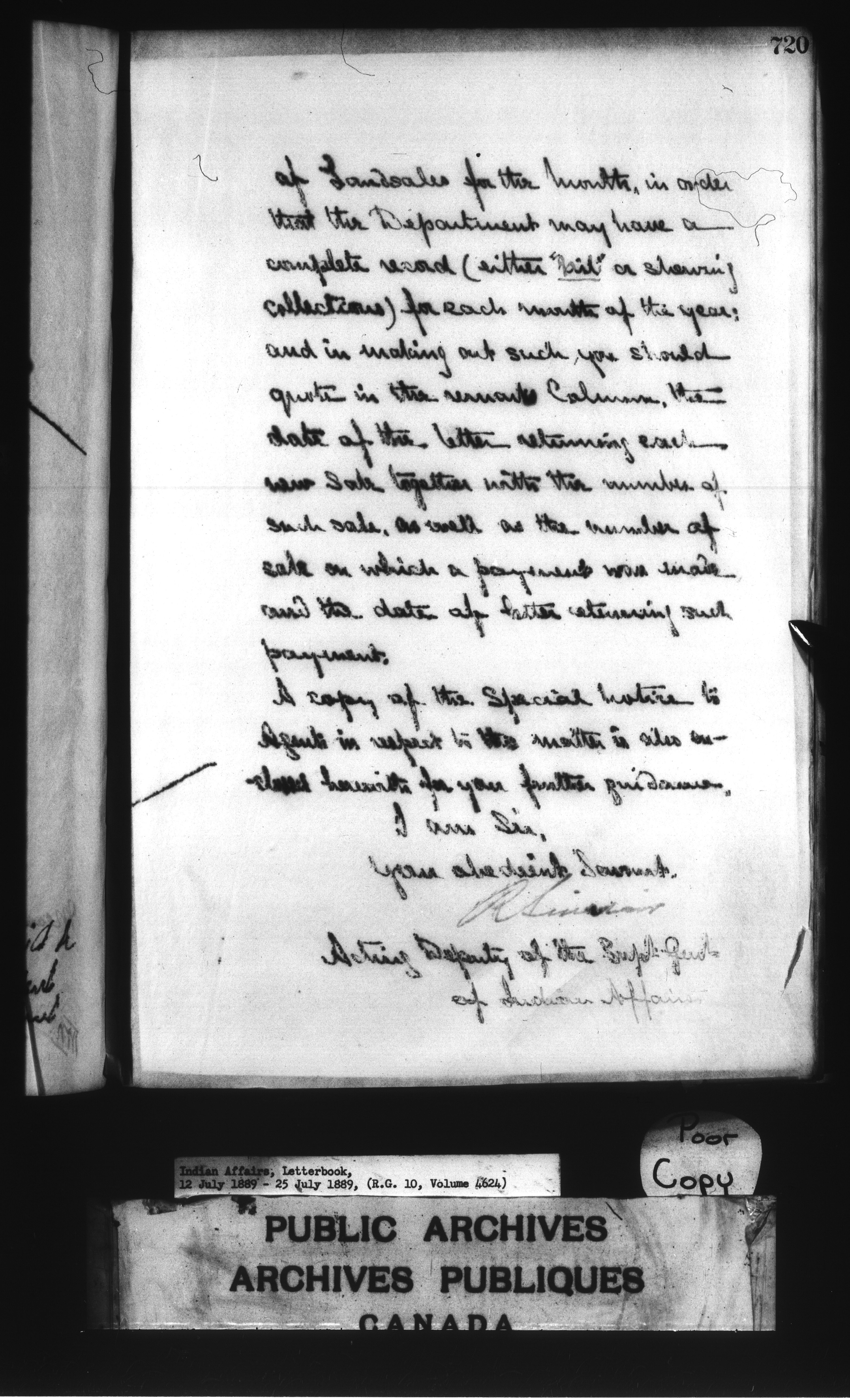 Department of Indian Affairs : Letterbooks of out-going correspondence relating to the administration of Indian Affairs in both eastern and western Canada, 1871-1920 - 7703