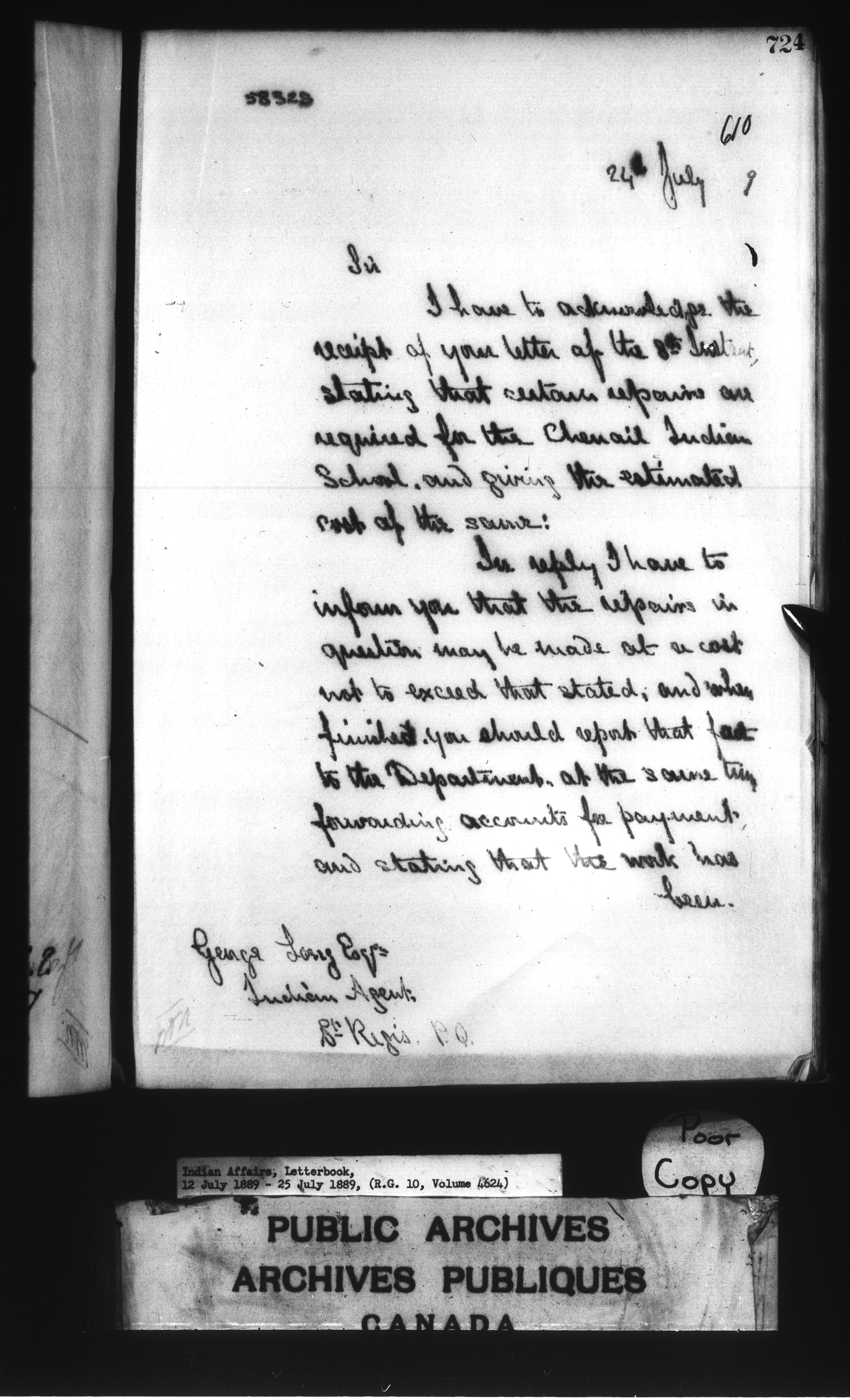 Department of Indian Affairs : Letterbooks of out-going correspondence relating to the administration of Indian Affairs in both eastern and western Canada, 1871-1920 - 7703