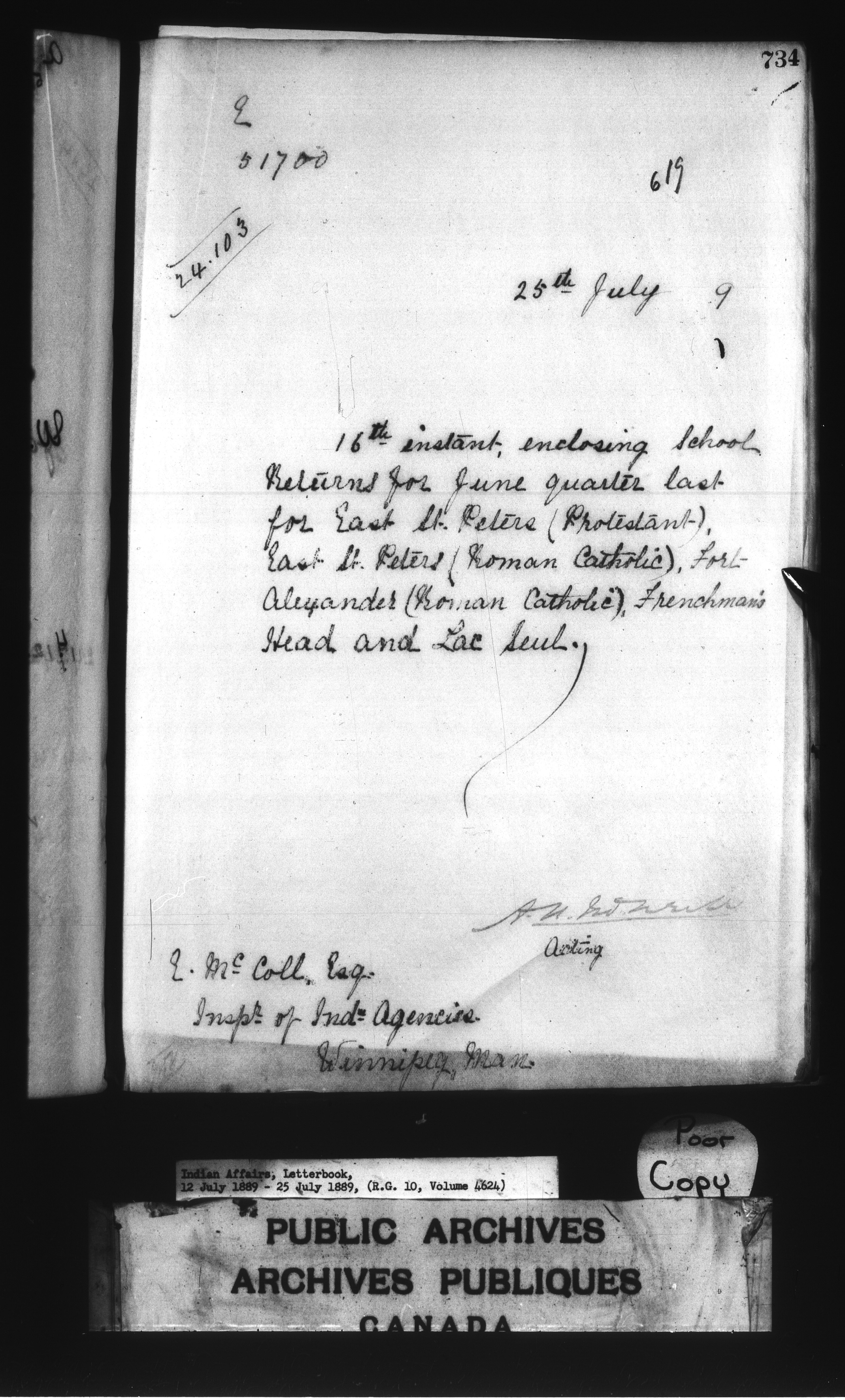 Department of Indian Affairs : Letterbooks of out-going correspondence relating to the administration of Indian Affairs in both eastern and western Canada, 1871-1920 - 7703