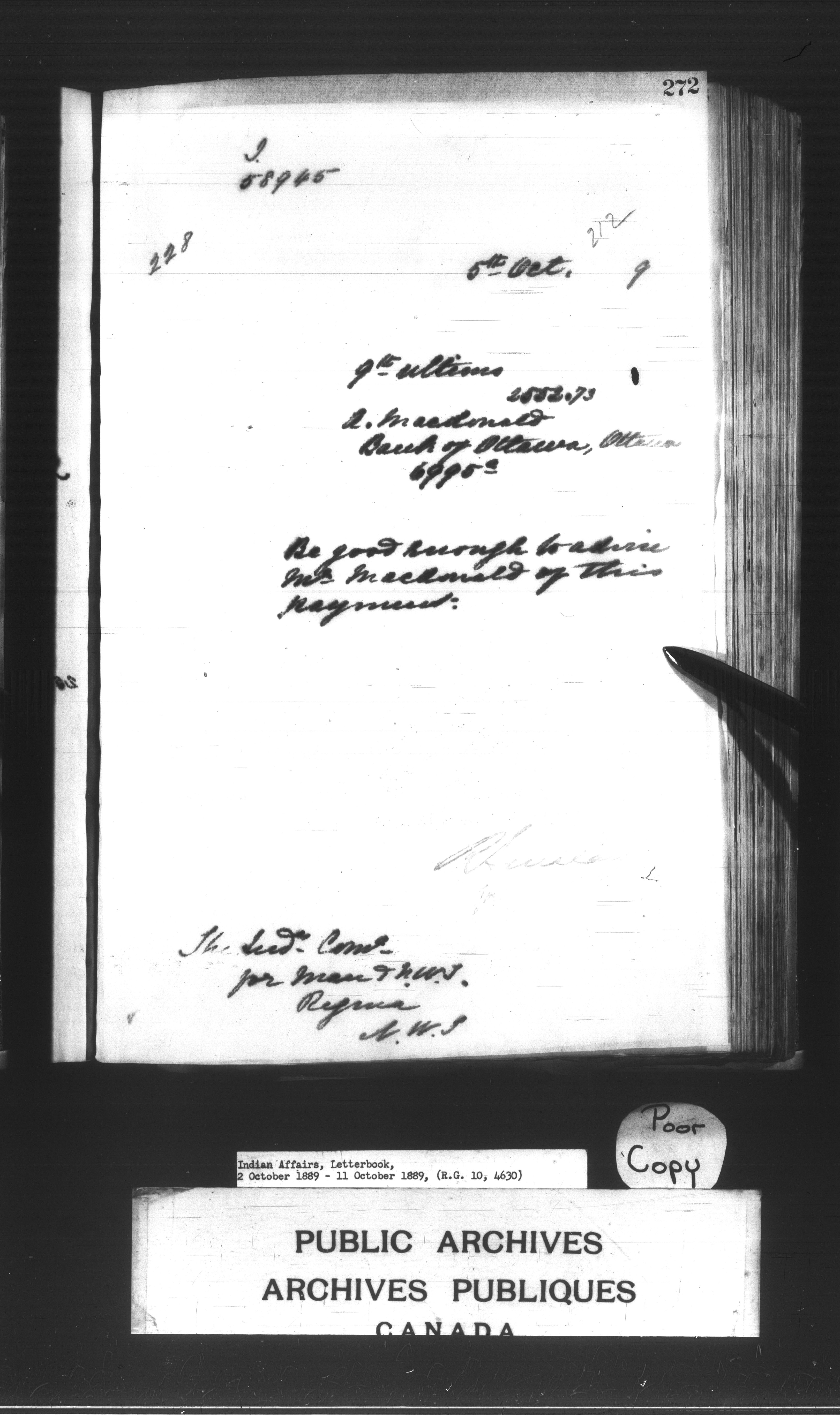 Department of Indian Affairs : Letterbooks of out-going correspondence relating to the administration of Indian Affairs in both eastern and western Canada, 1871-1920 - 7707