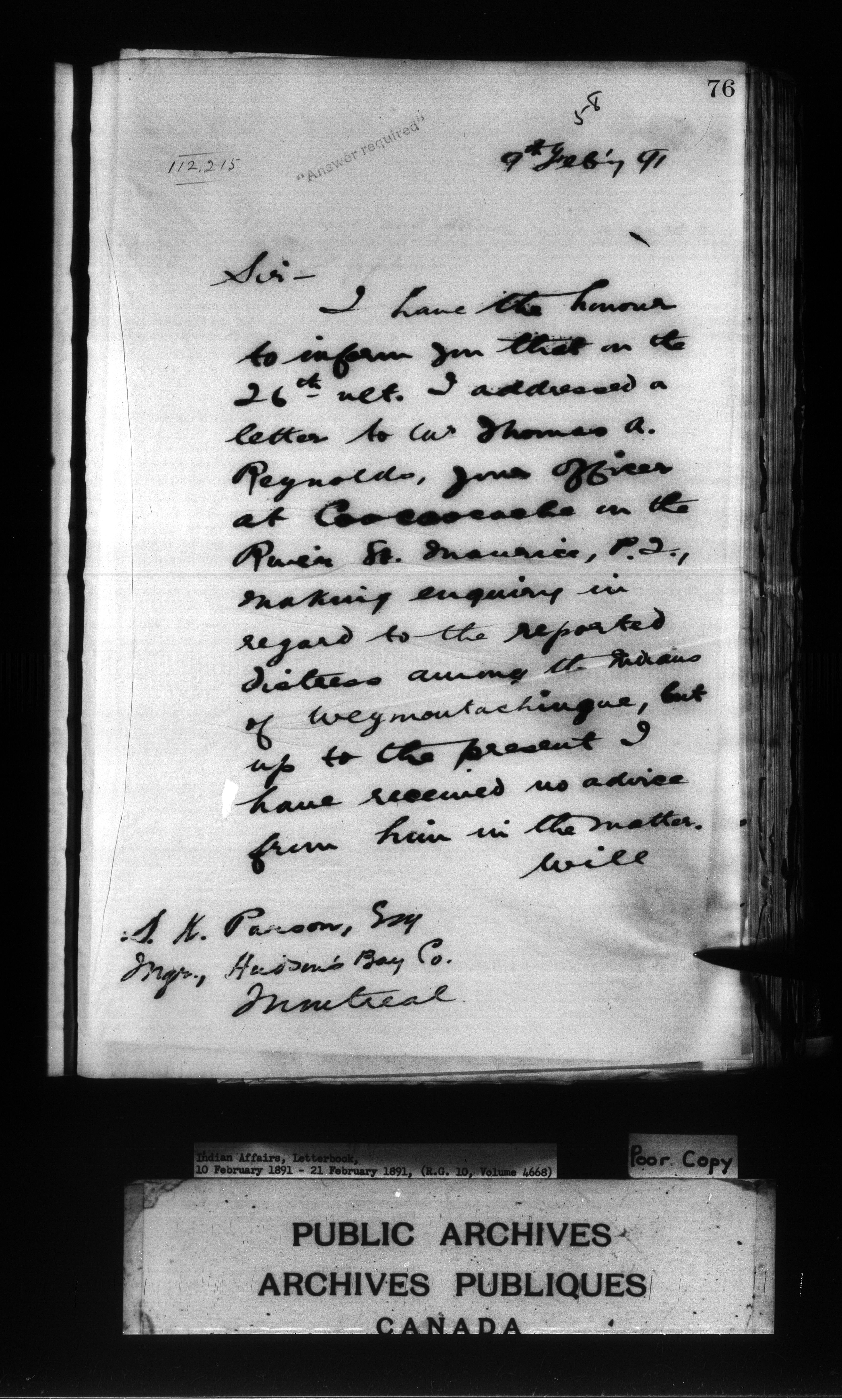 Department of Indian Affairs : Letterbooks of out-going correspondence relating to the administration of Indian Affairs in both eastern and western Canada, 1871-1920 - 7727
