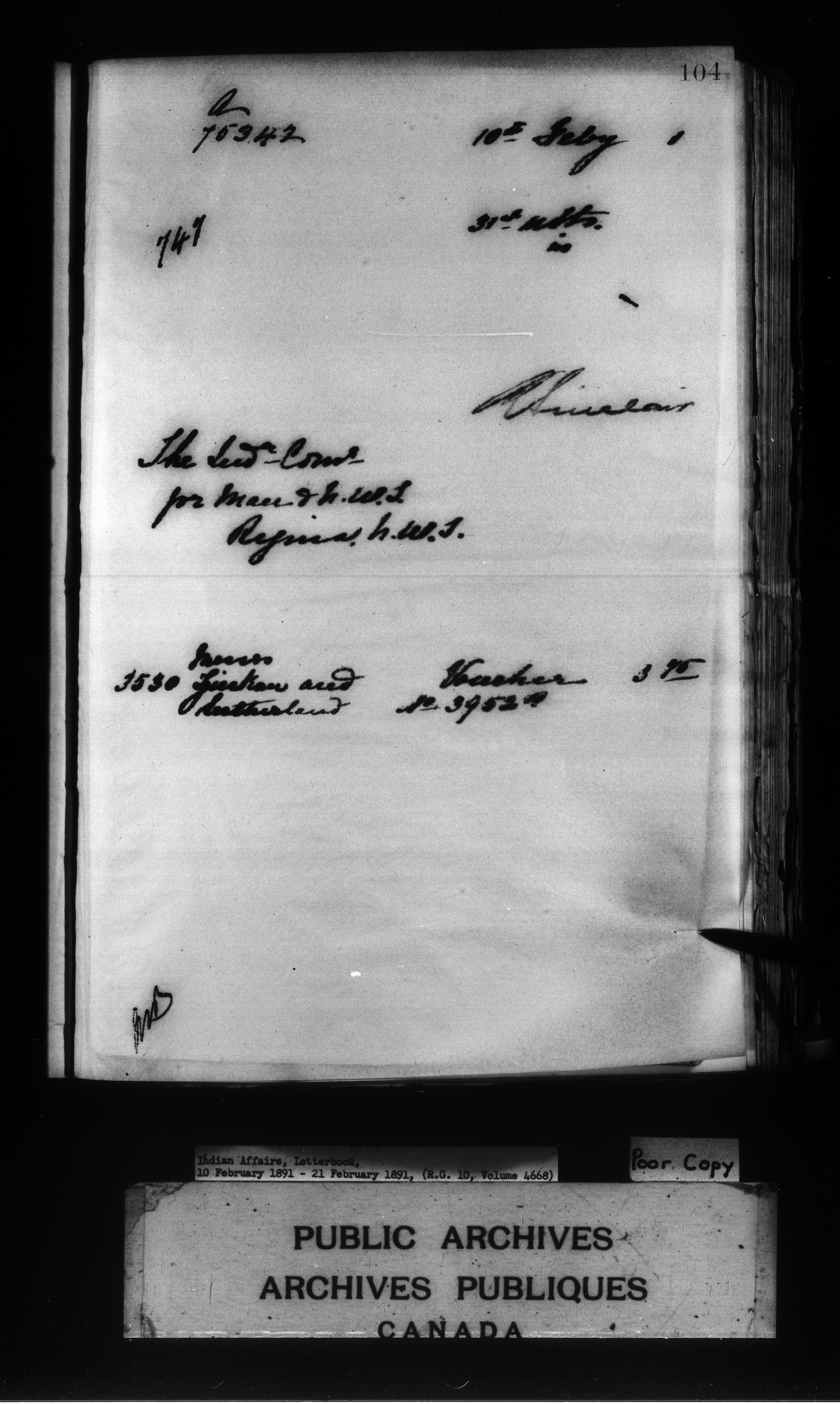 Department of Indian Affairs : Letterbooks of out-going correspondence relating to the administration of Indian Affairs in both eastern and western Canada, 1871-1920 - 7727