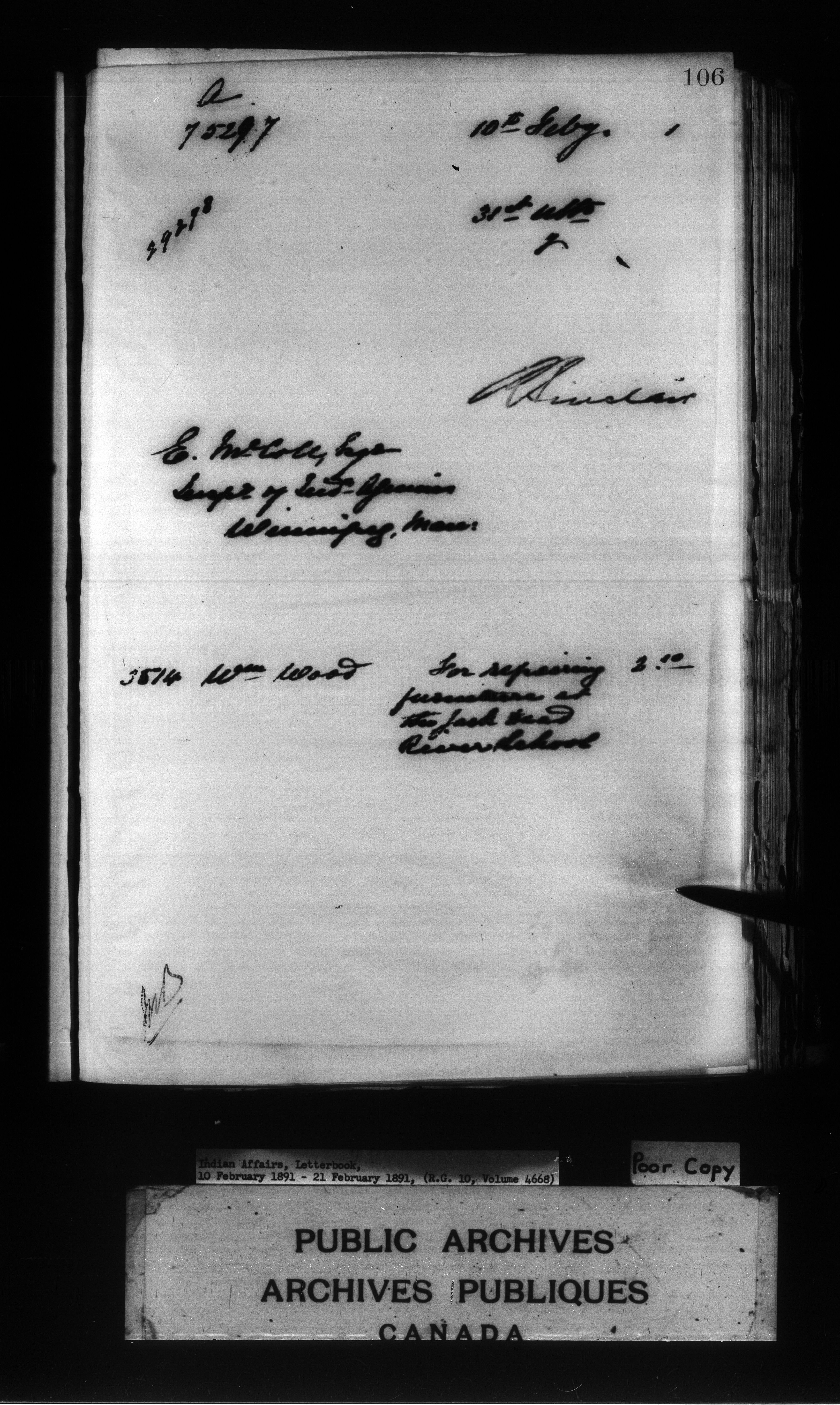 Department of Indian Affairs : Letterbooks of out-going correspondence relating to the administration of Indian Affairs in both eastern and western Canada, 1871-1920 - 7727