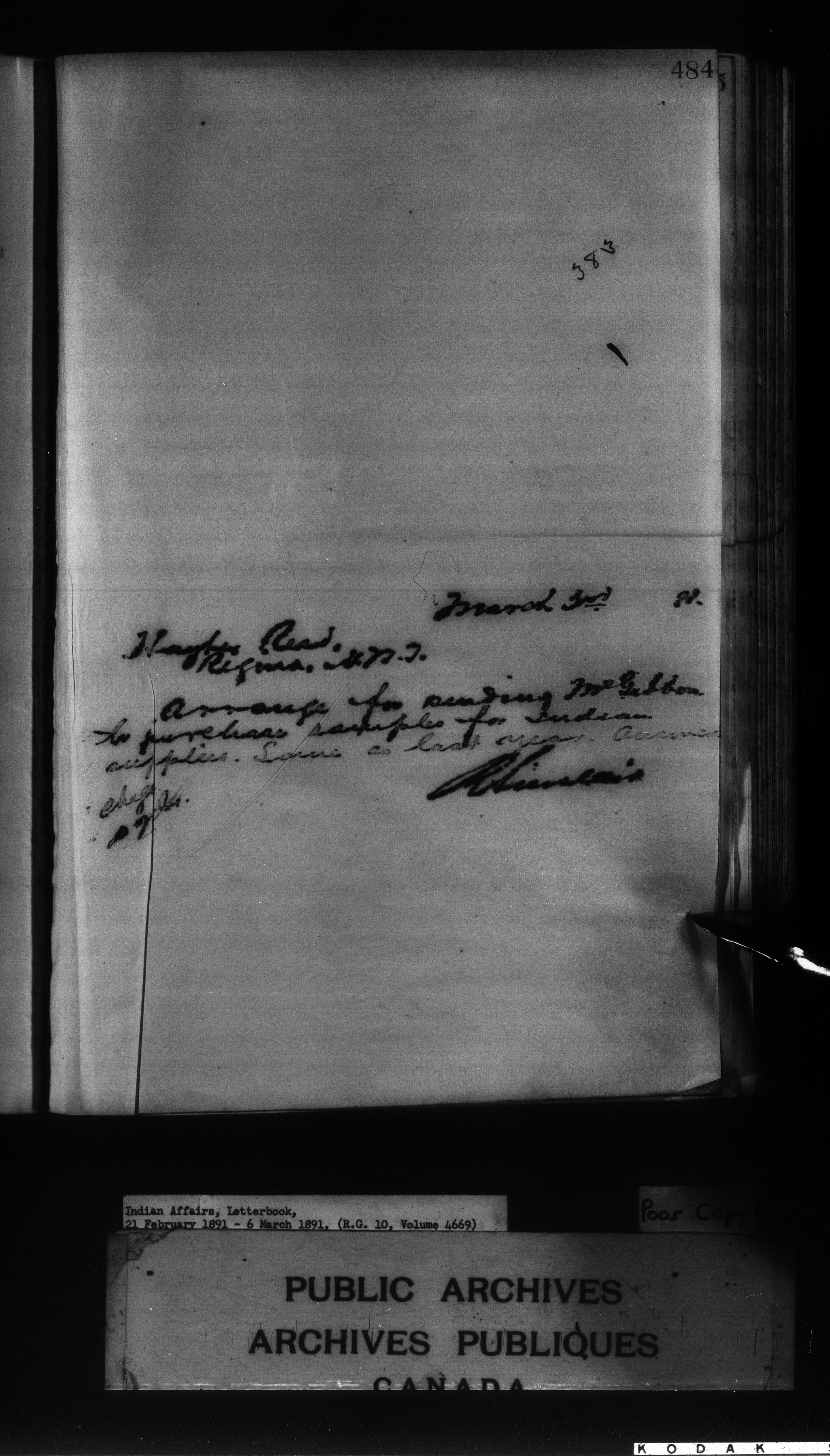 Department of Indian Affairs : Letterbooks of out-going correspondence relating to the administration of Indian Affairs in both eastern and western Canada, 1871-1920 - 7728