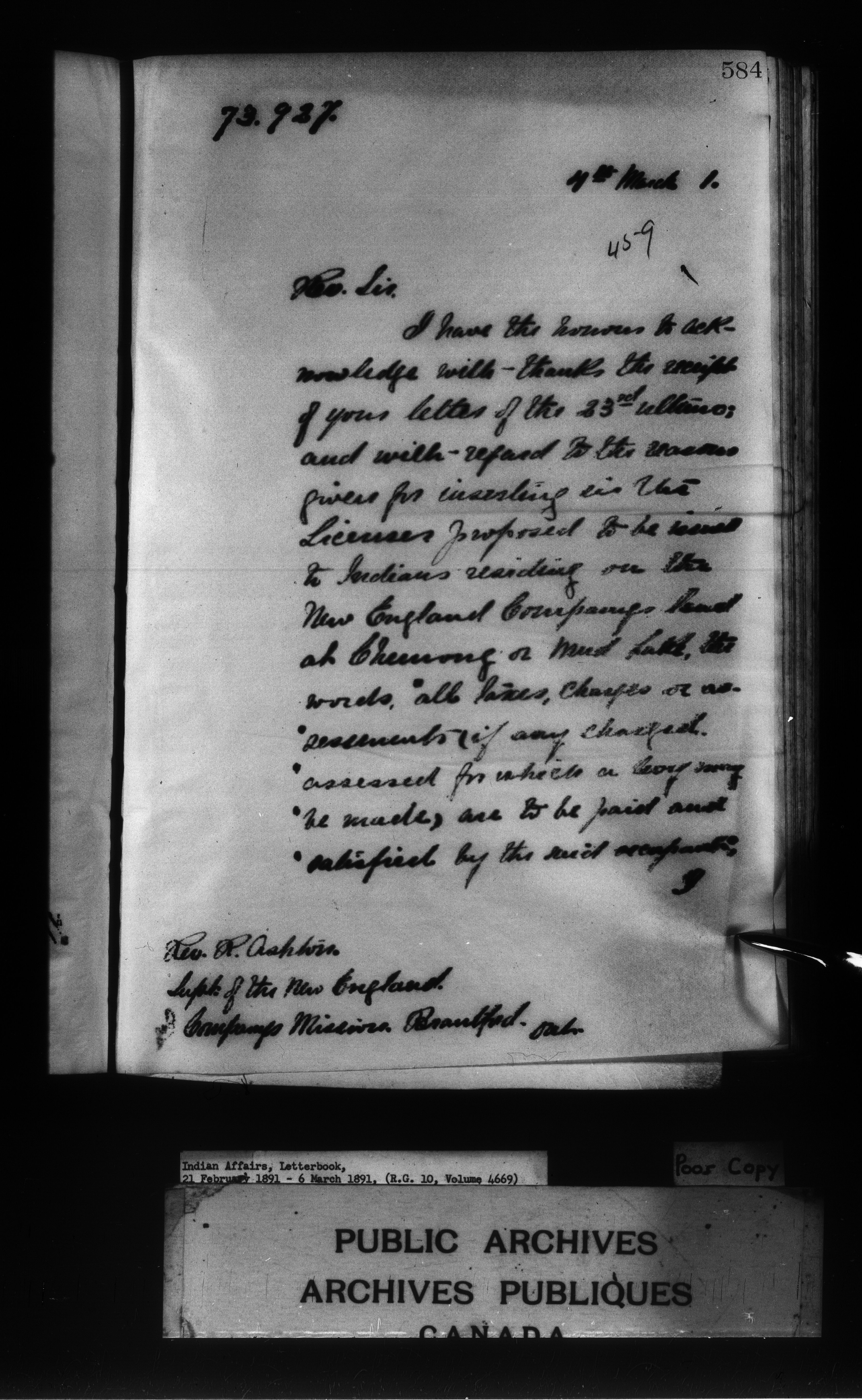 Department of Indian Affairs : Letterbooks of out-going correspondence relating to the administration of Indian Affairs in both eastern and western Canada, 1871-1920 - 7728