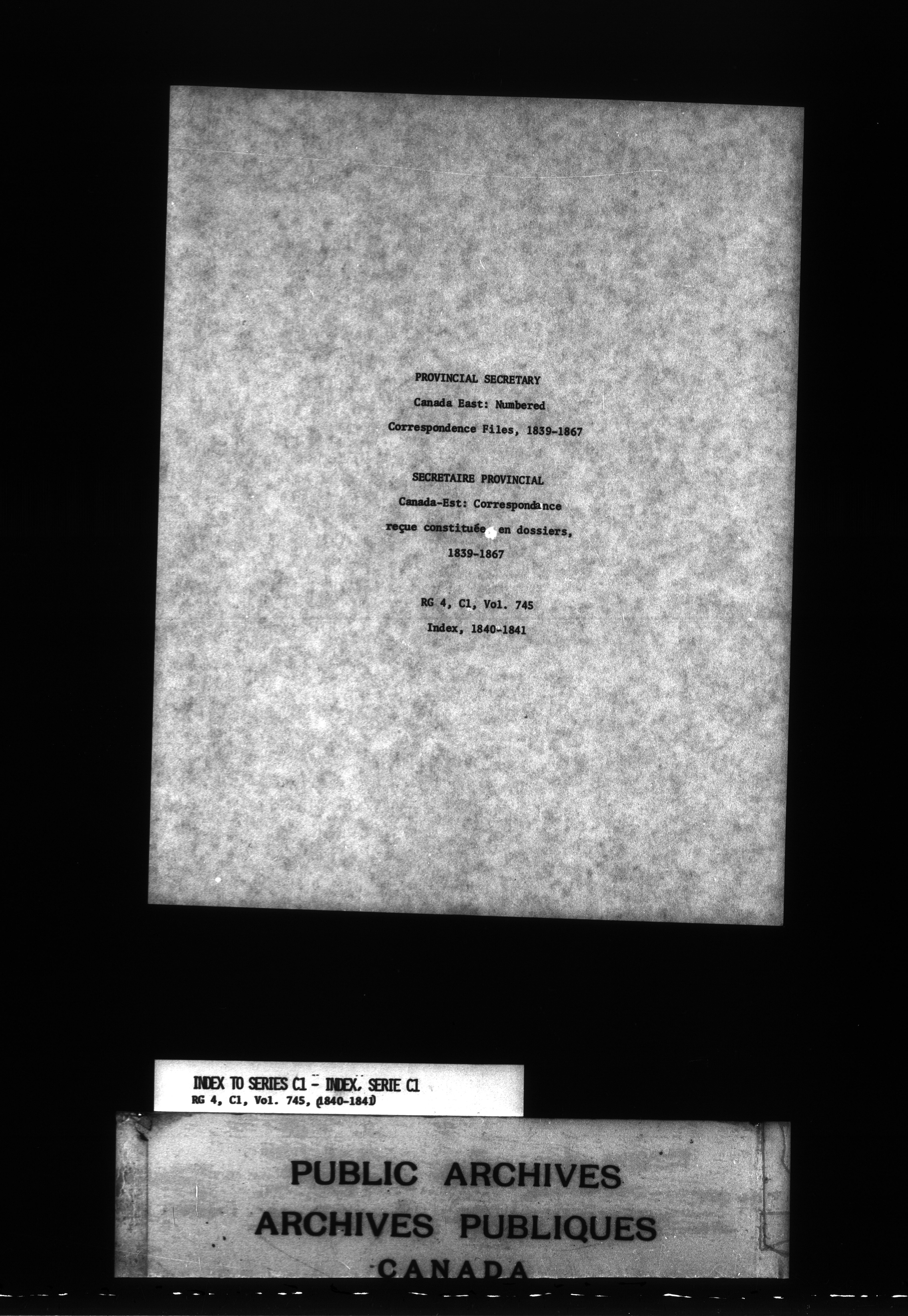Provincial Secretary numbered correspondence files, Canada East : Registers and Indexes, 1839-1867 - 7729