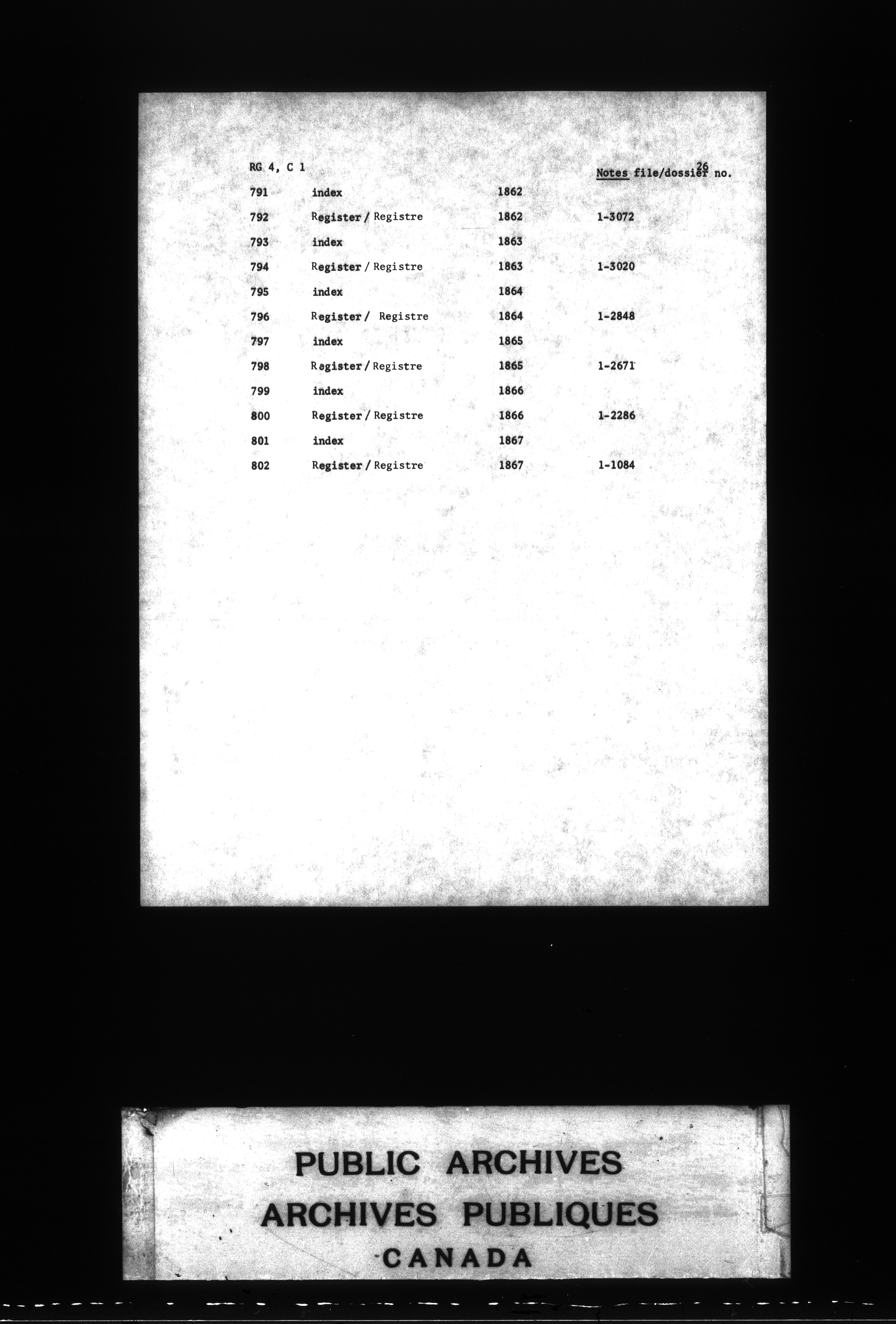 Provincial Secretary numbered correspondence files, Canada East : Registers and Indexes, 1839-1867 - 7729