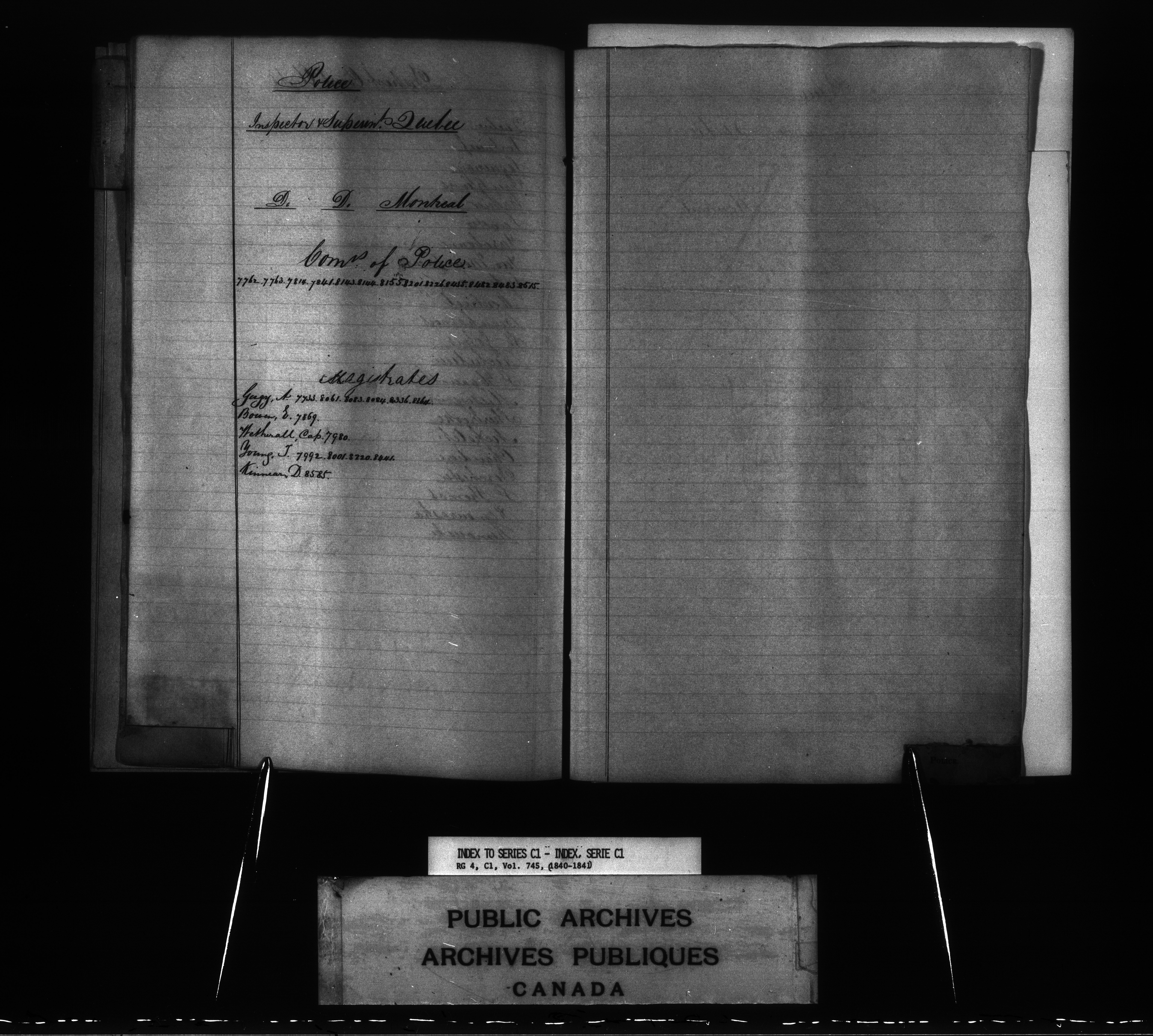 Provincial Secretary numbered correspondence files, Canada East : Registers and Indexes, 1839-1867 - 7729