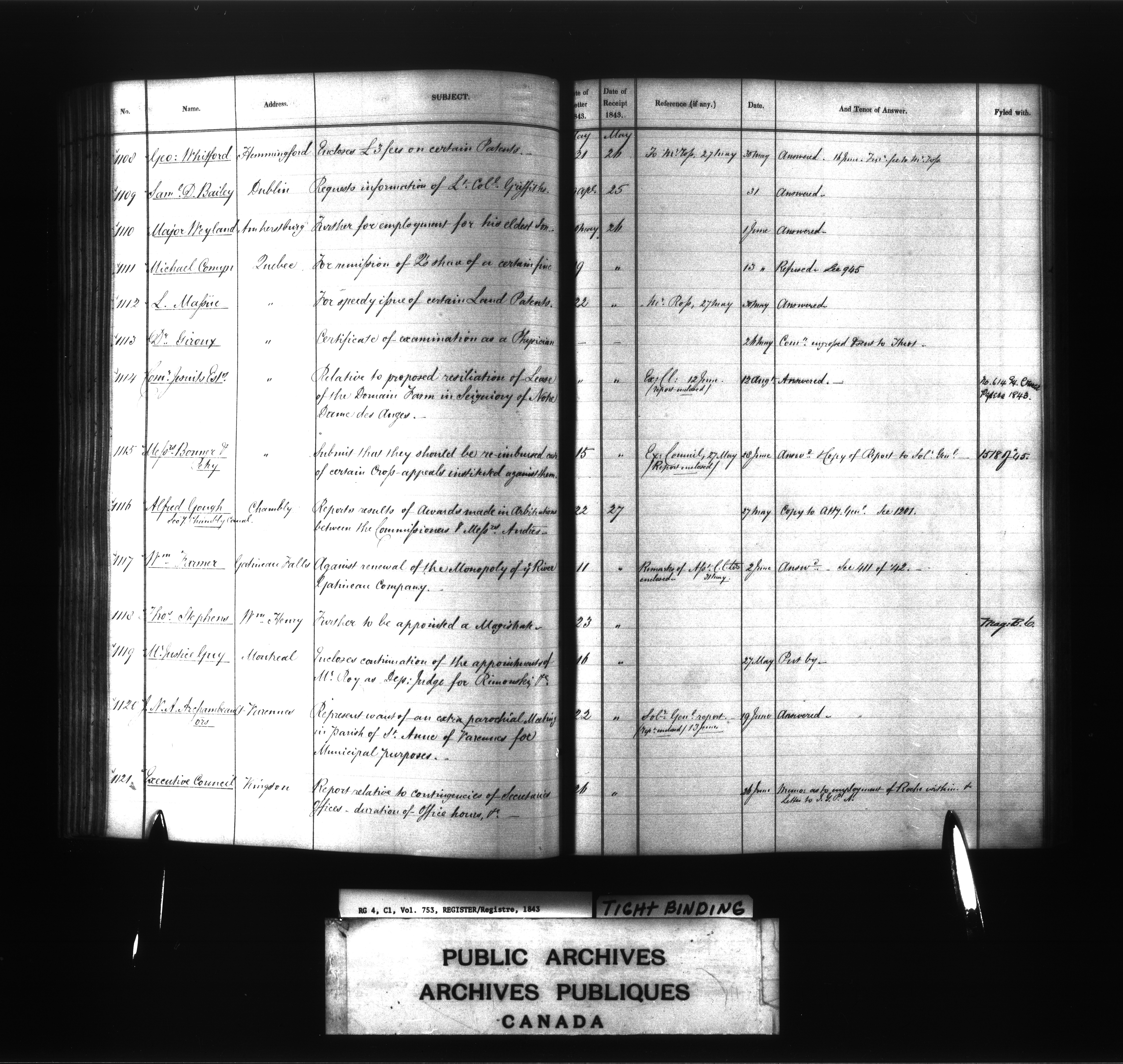 Provincial Secretary numbered correspondence files, Canada East : Registers and Indexes, 1839-1867 - 7730
