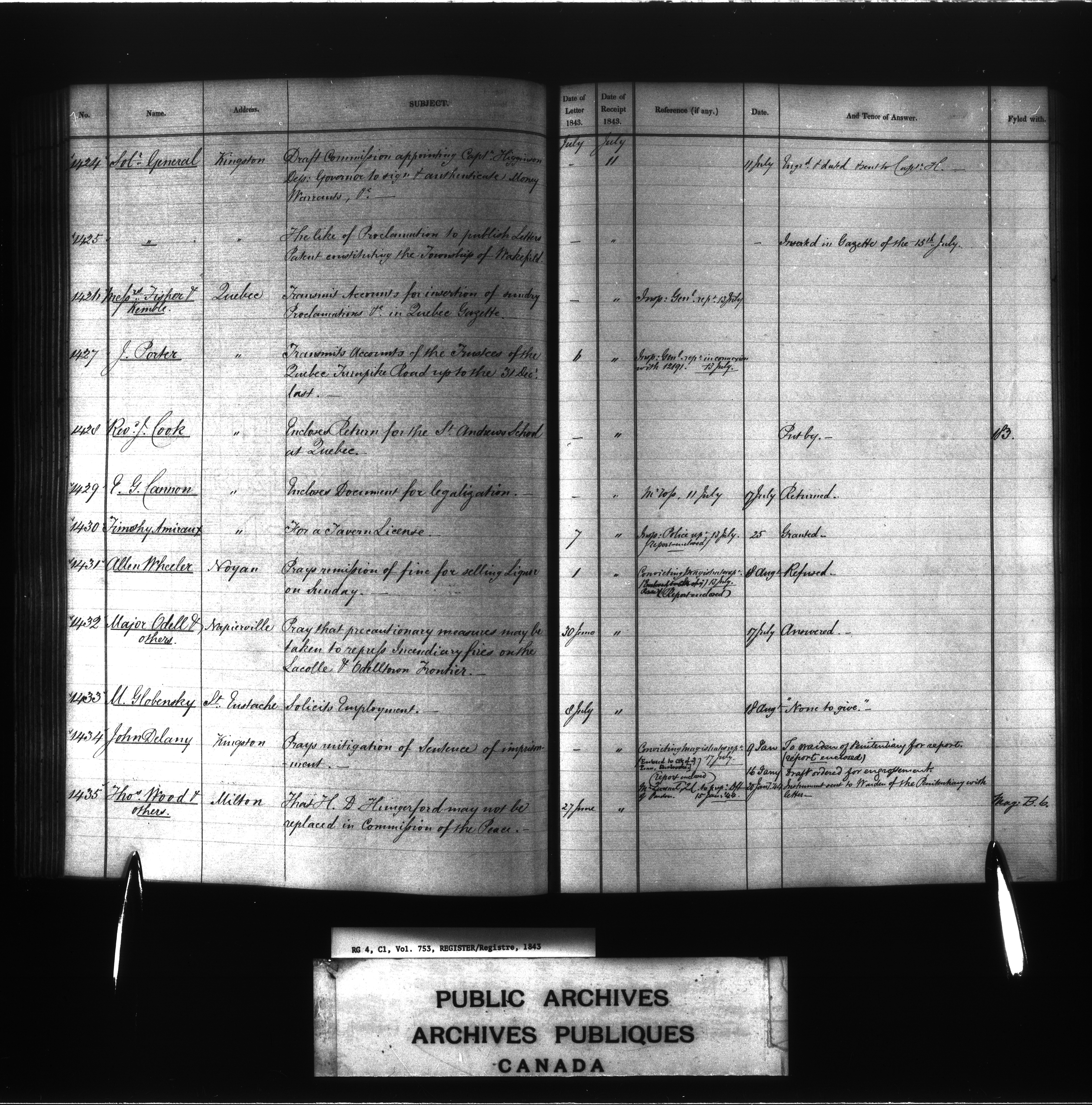 Provincial Secretary numbered correspondence files, Canada East : Registers and Indexes, 1839-1867 - 7732