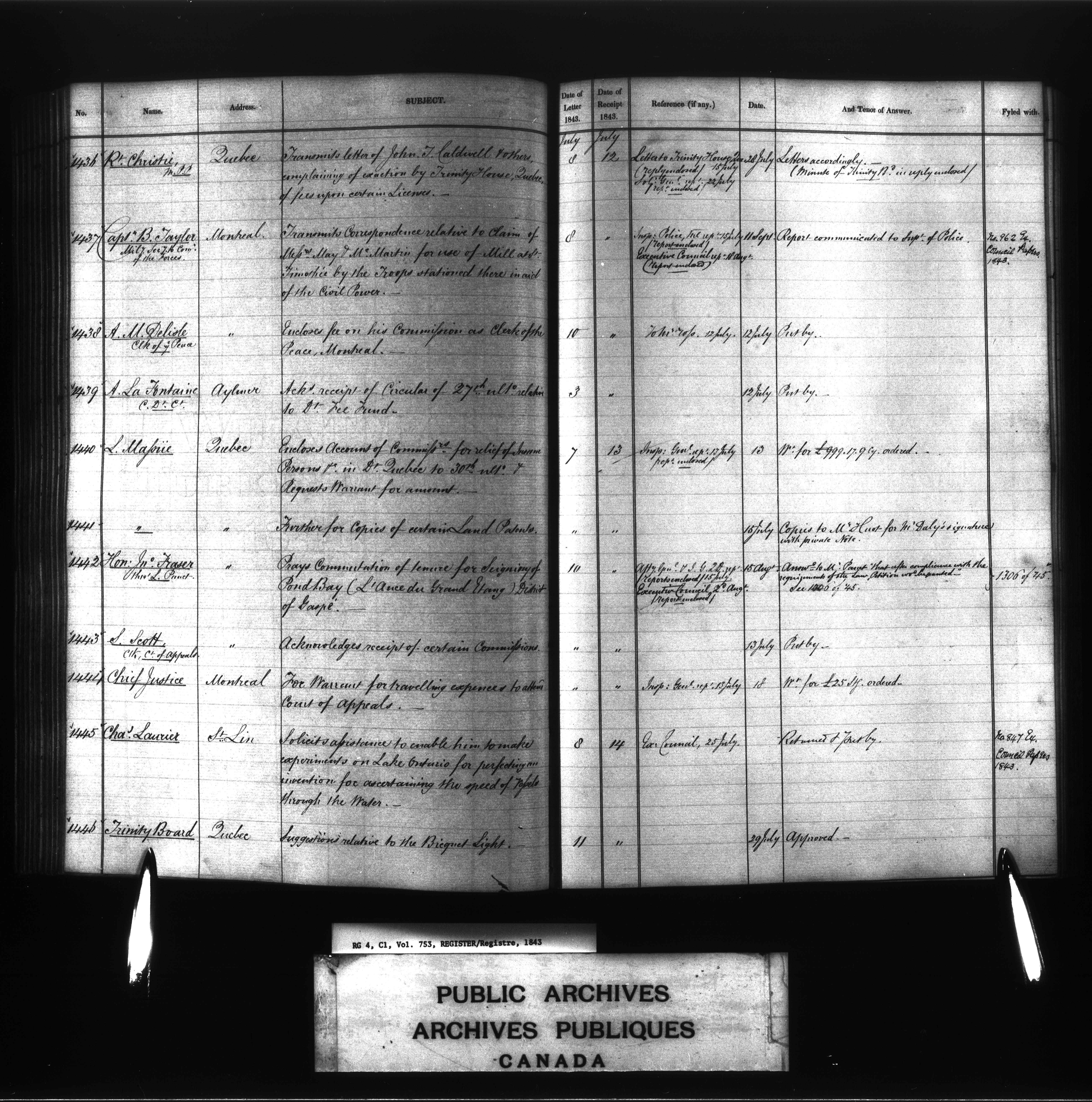 Provincial Secretary numbered correspondence files, Canada East : Registers and Indexes, 1839-1867 - 7732