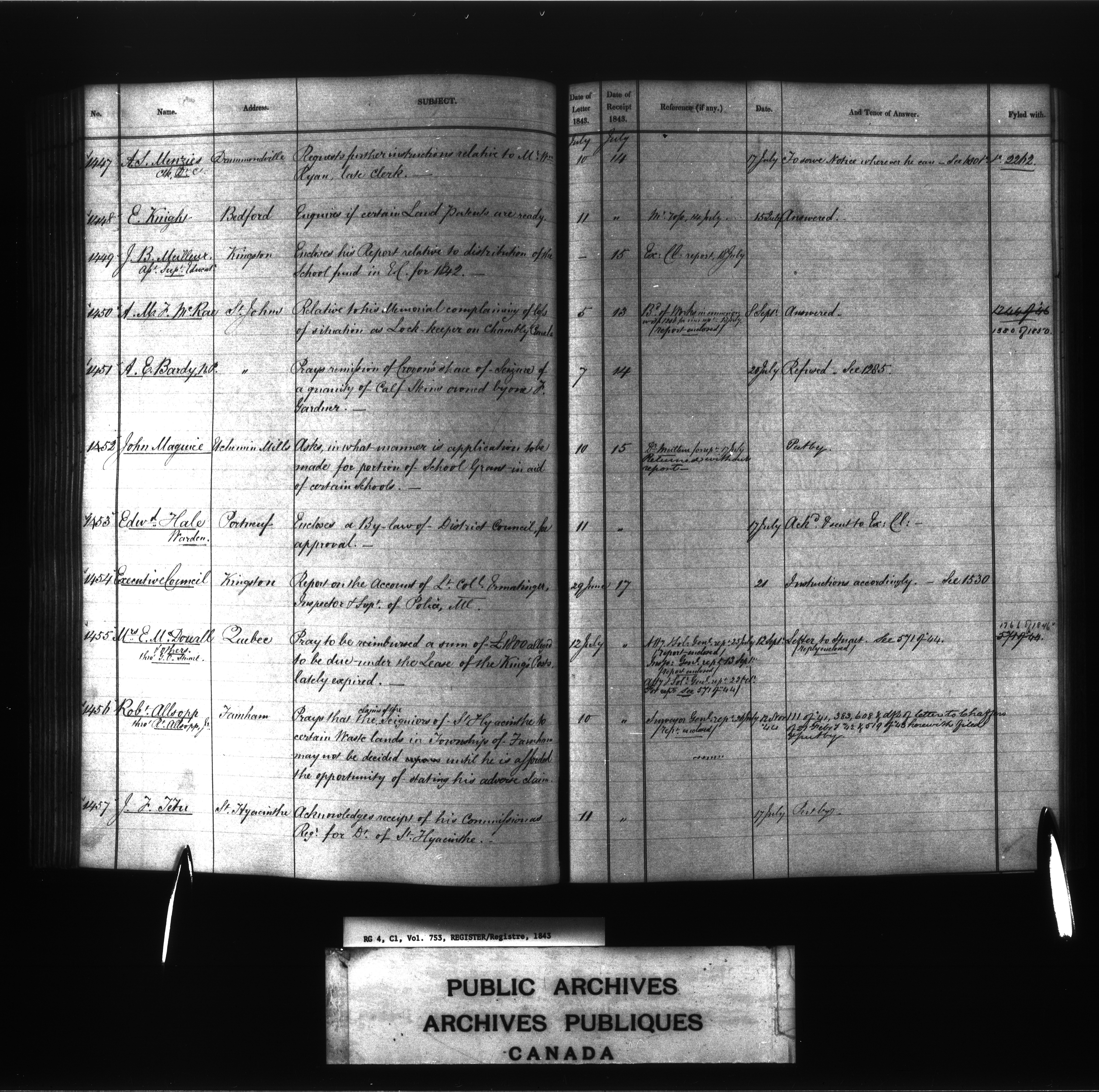 Provincial Secretary numbered correspondence files, Canada East : Registers and Indexes, 1839-1867 - 7732