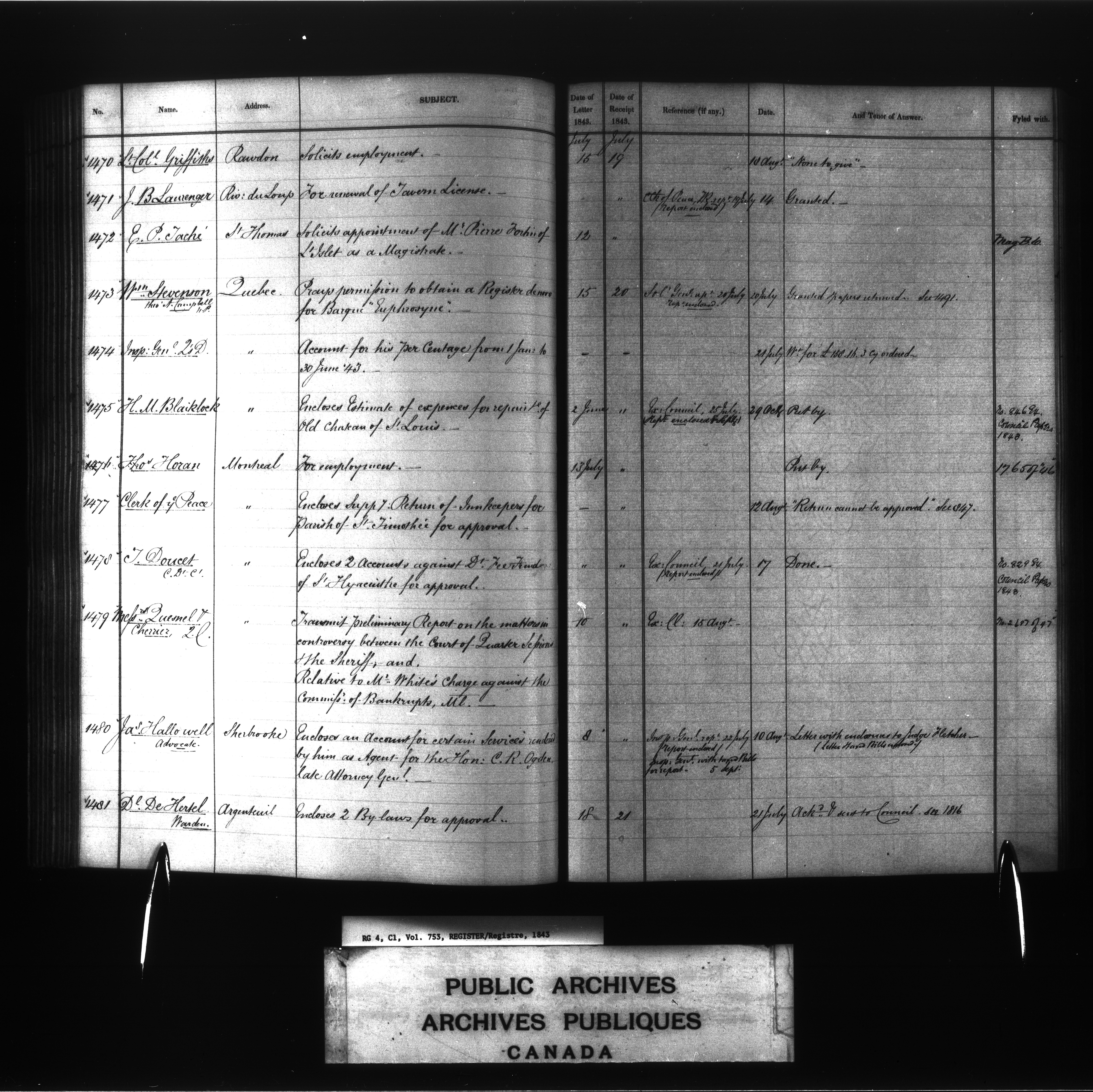 Provincial Secretary numbered correspondence files, Canada East : Registers and Indexes, 1839-1867 - 7732