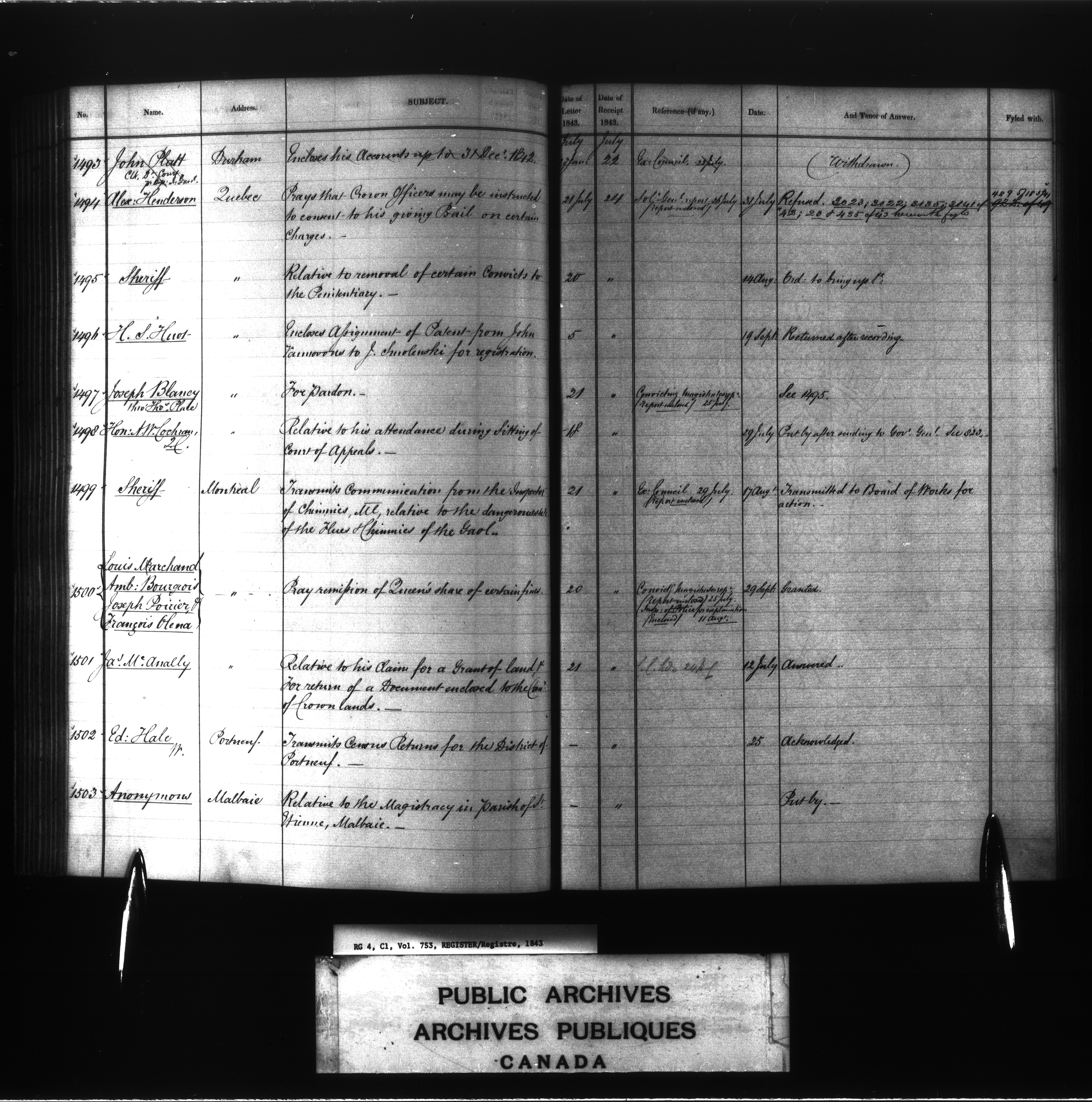 Provincial Secretary numbered correspondence files, Canada East : Registers and Indexes, 1839-1867 - 7732