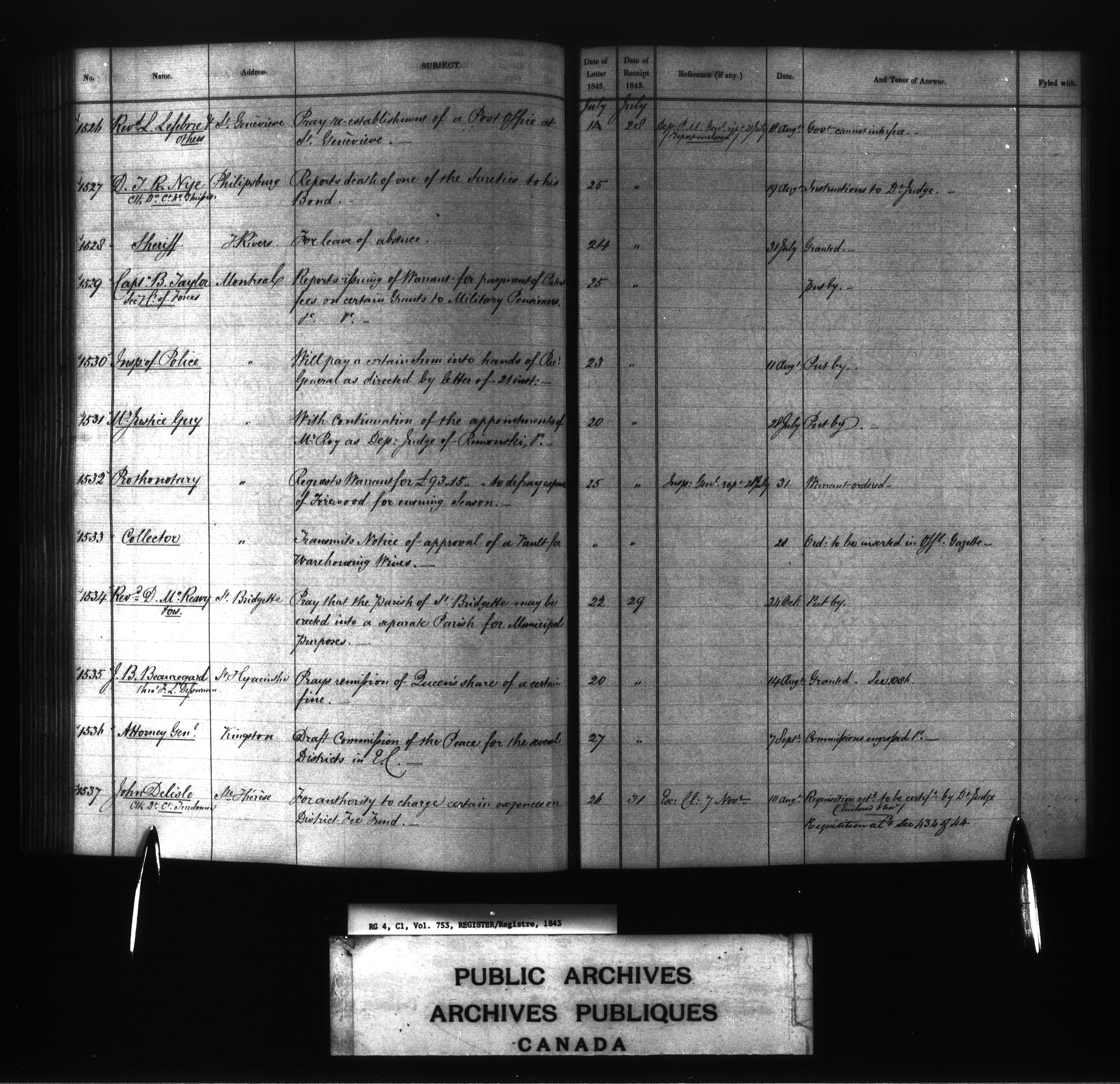 Provincial Secretary numbered correspondence files, Canada East : Registers and Indexes, 1839-1867 - 7732