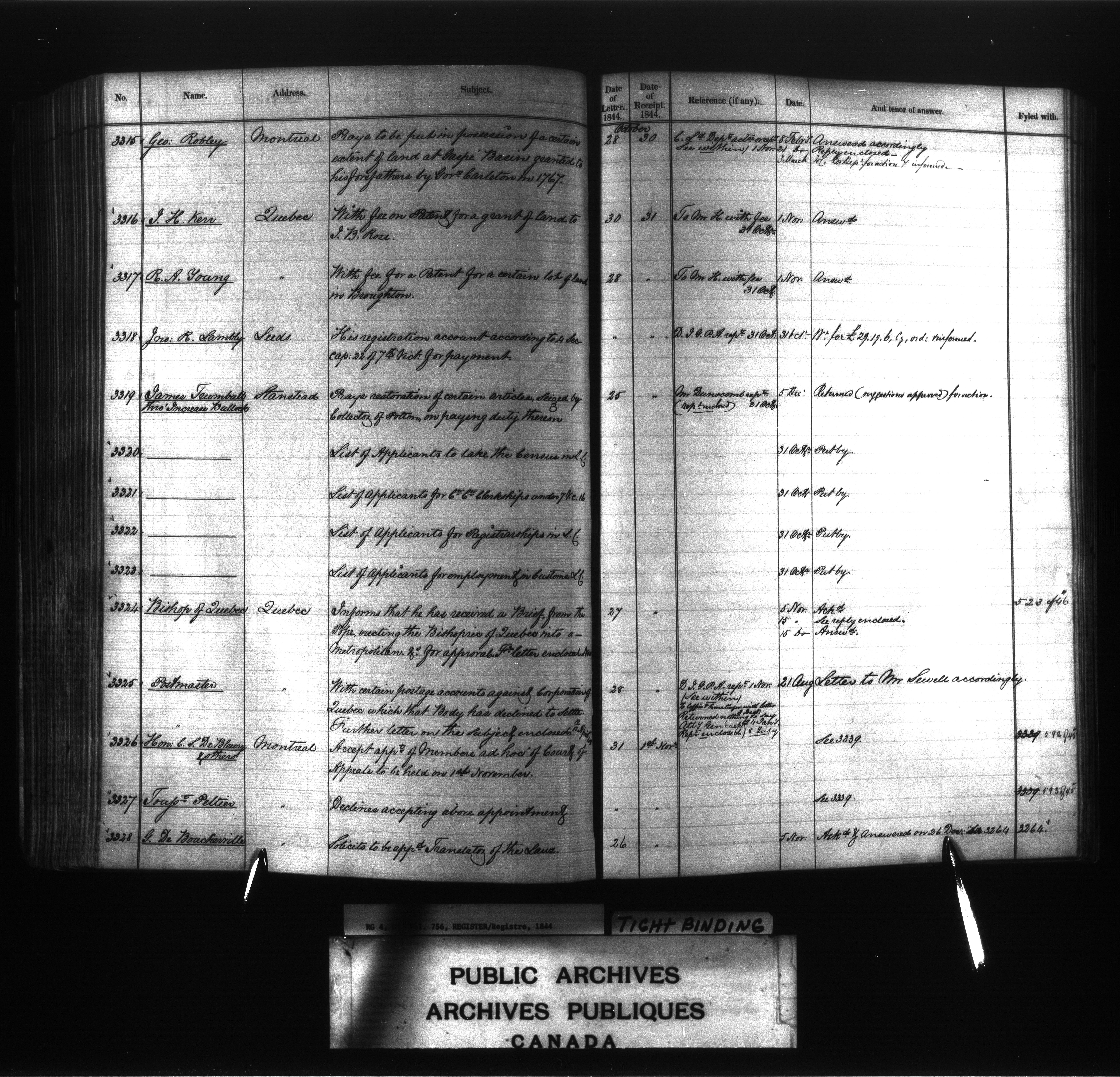 Provincial Secretary numbered correspondence files, Canada East : Registers and Indexes, 1839-1867 - 7732