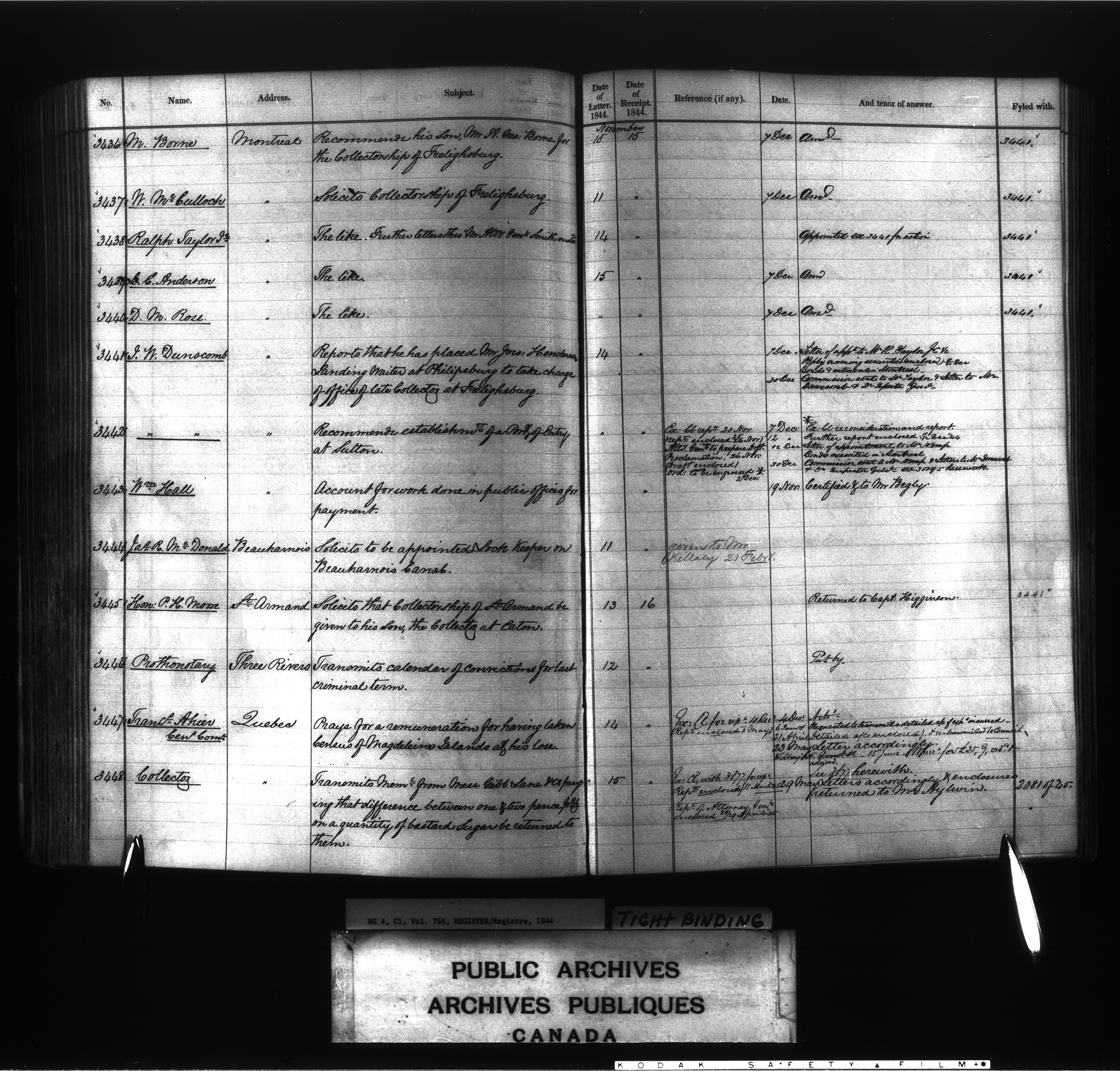 Provincial Secretary numbered correspondence files, Canada East : Registers and Indexes, 1839-1867 - 7732