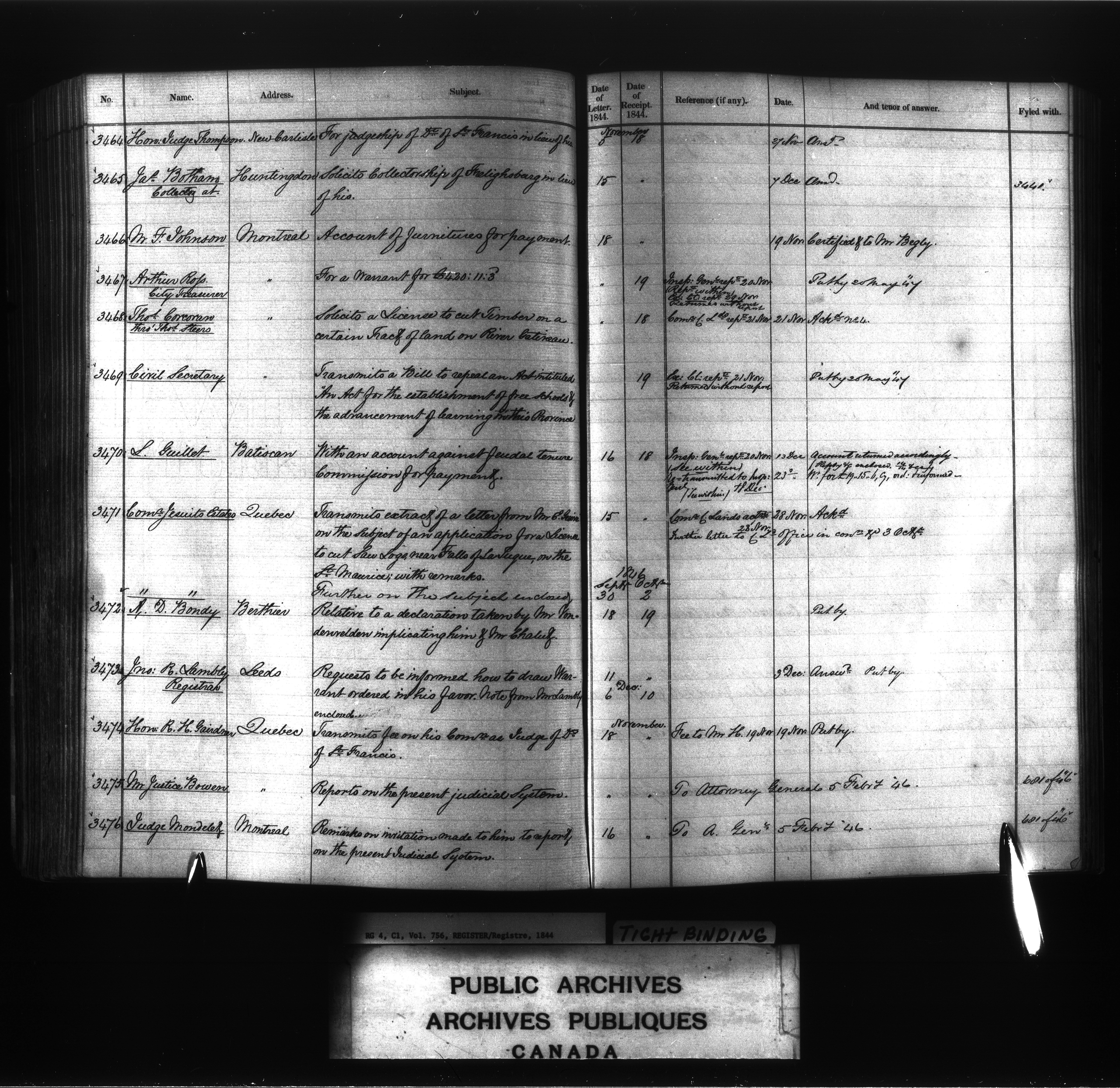 Provincial Secretary numbered correspondence files, Canada East : Registers and Indexes, 1839-1867 - 7732