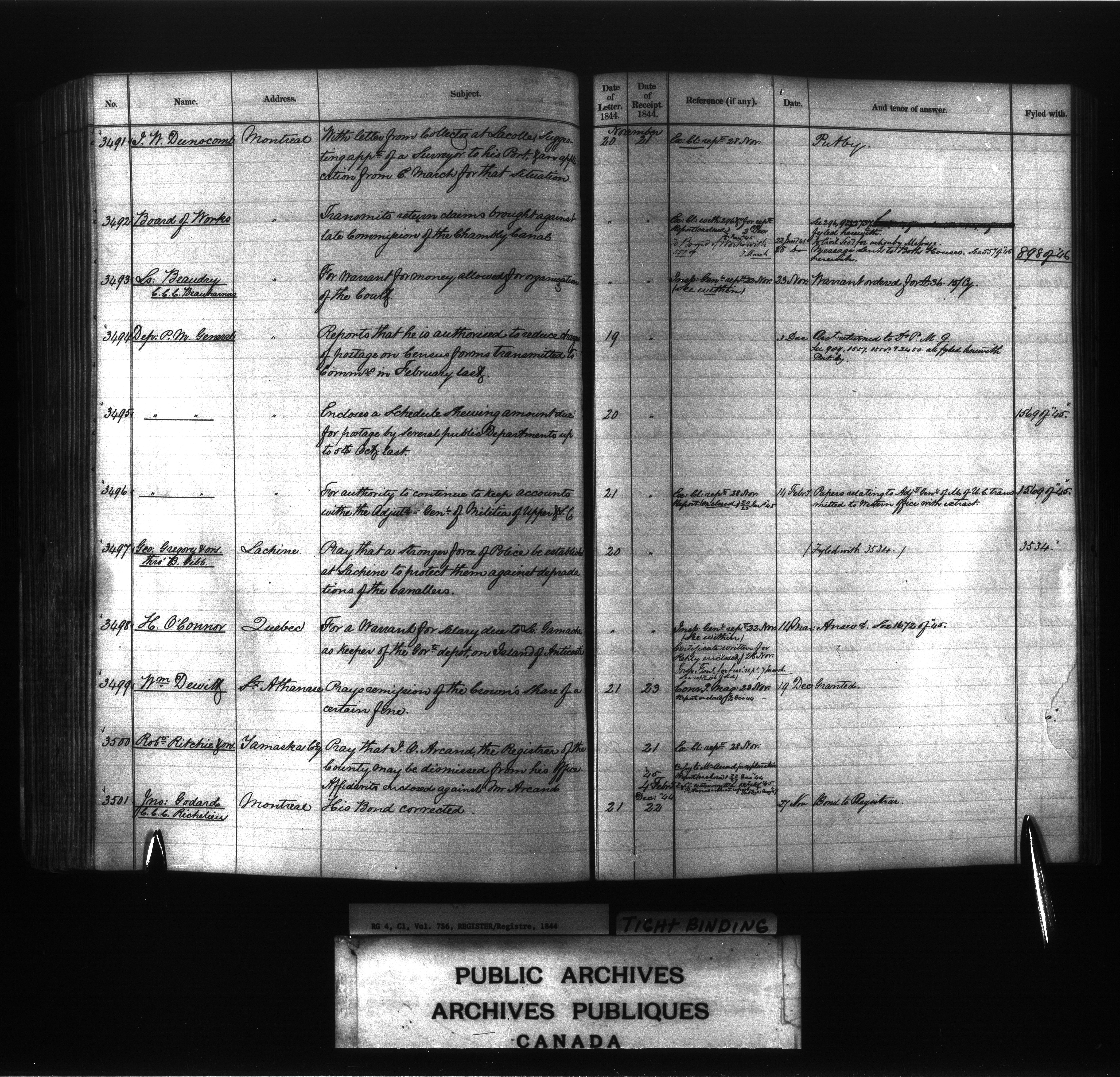 Provincial Secretary numbered correspondence files, Canada East : Registers and Indexes, 1839-1867 - 7732