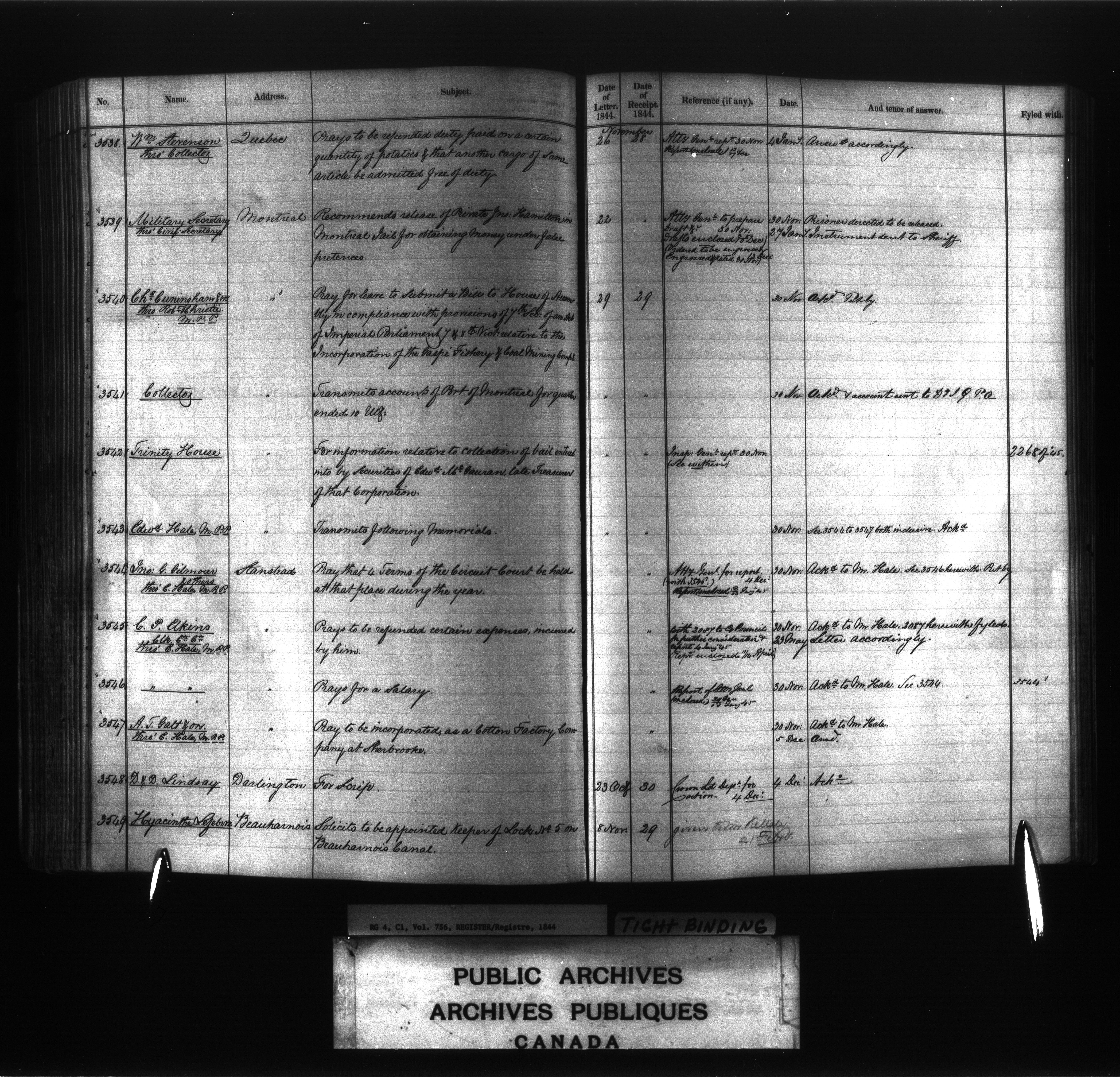 Provincial Secretary numbered correspondence files, Canada East : Registers and Indexes, 1839-1867 - 7732