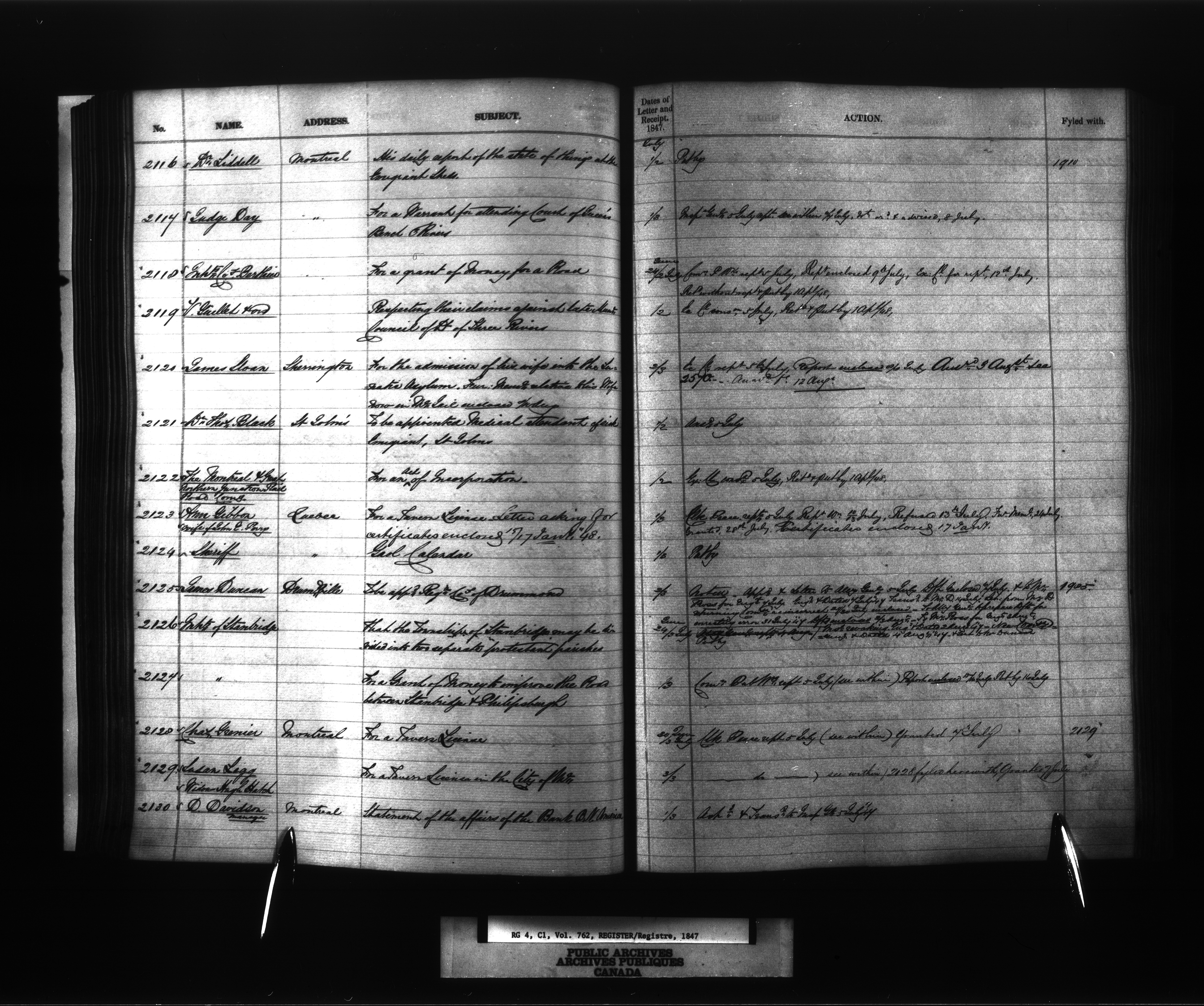 Provincial Secretary numbered correspondence files, Canada East : Registers and Indexes, 1839-1867 - 7734