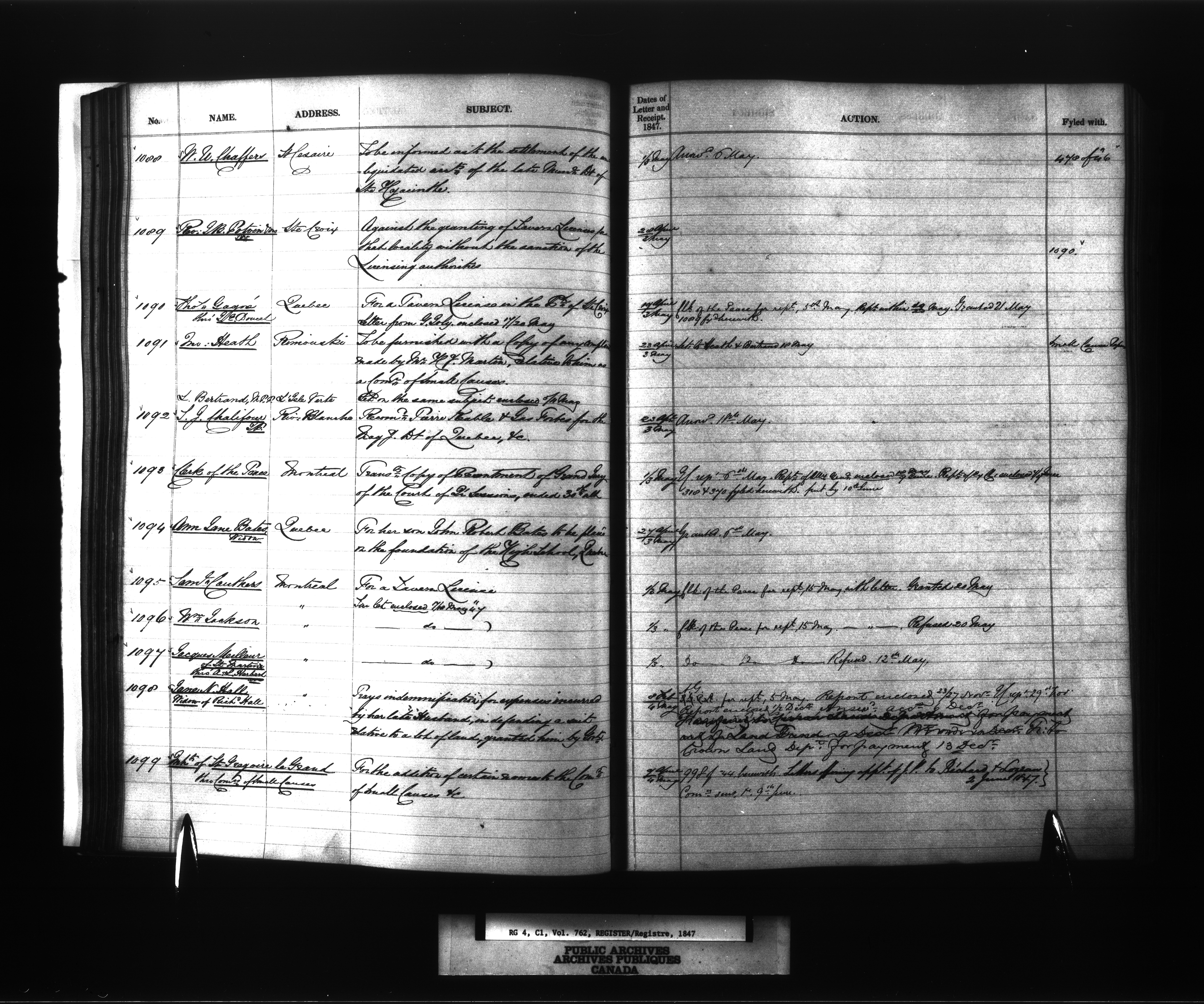 Provincial Secretary numbered correspondence files, Canada East : Registers and Indexes, 1839-1867 - 7734