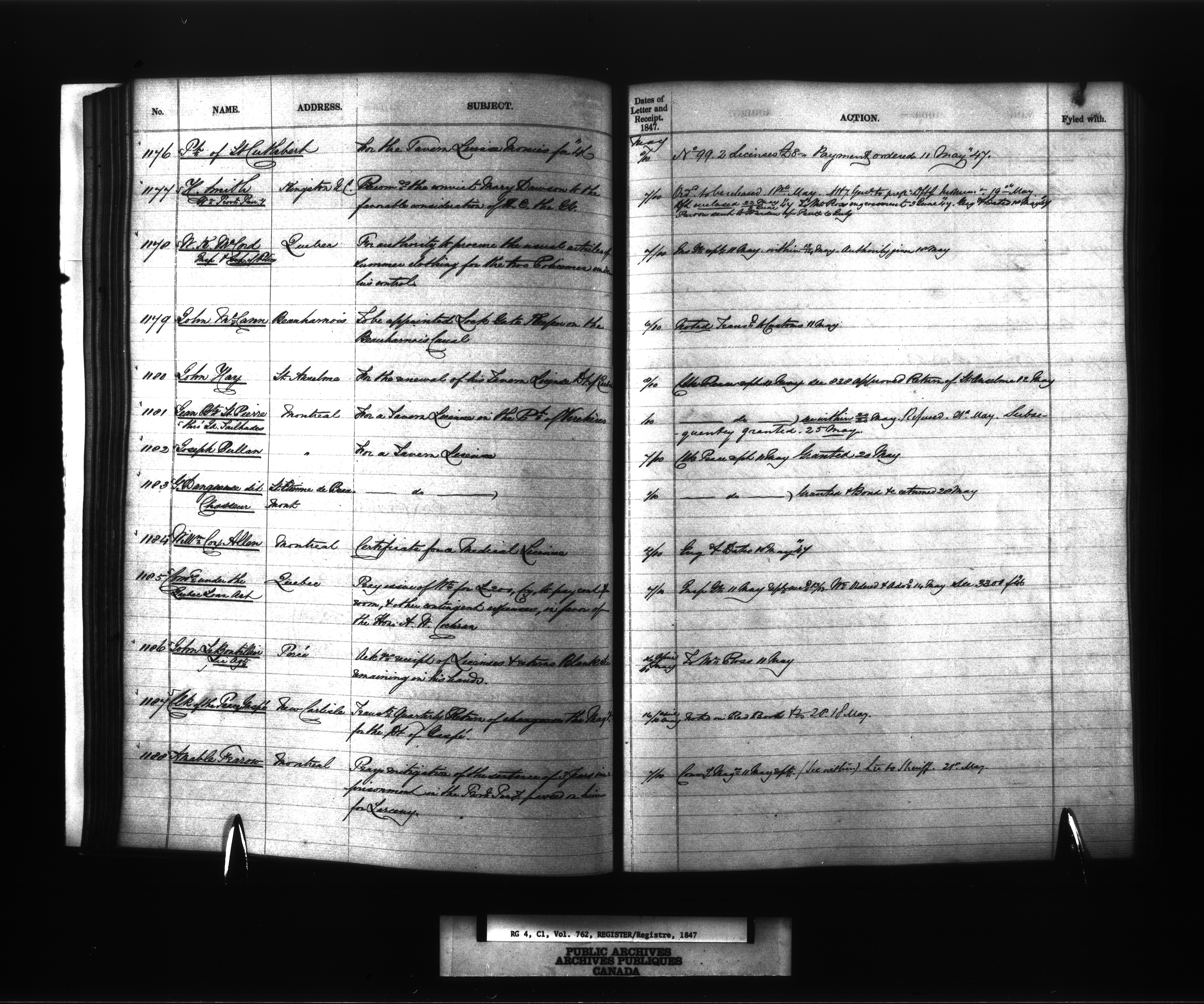 Provincial Secretary numbered correspondence files, Canada East : Registers and Indexes, 1839-1867 - 7734