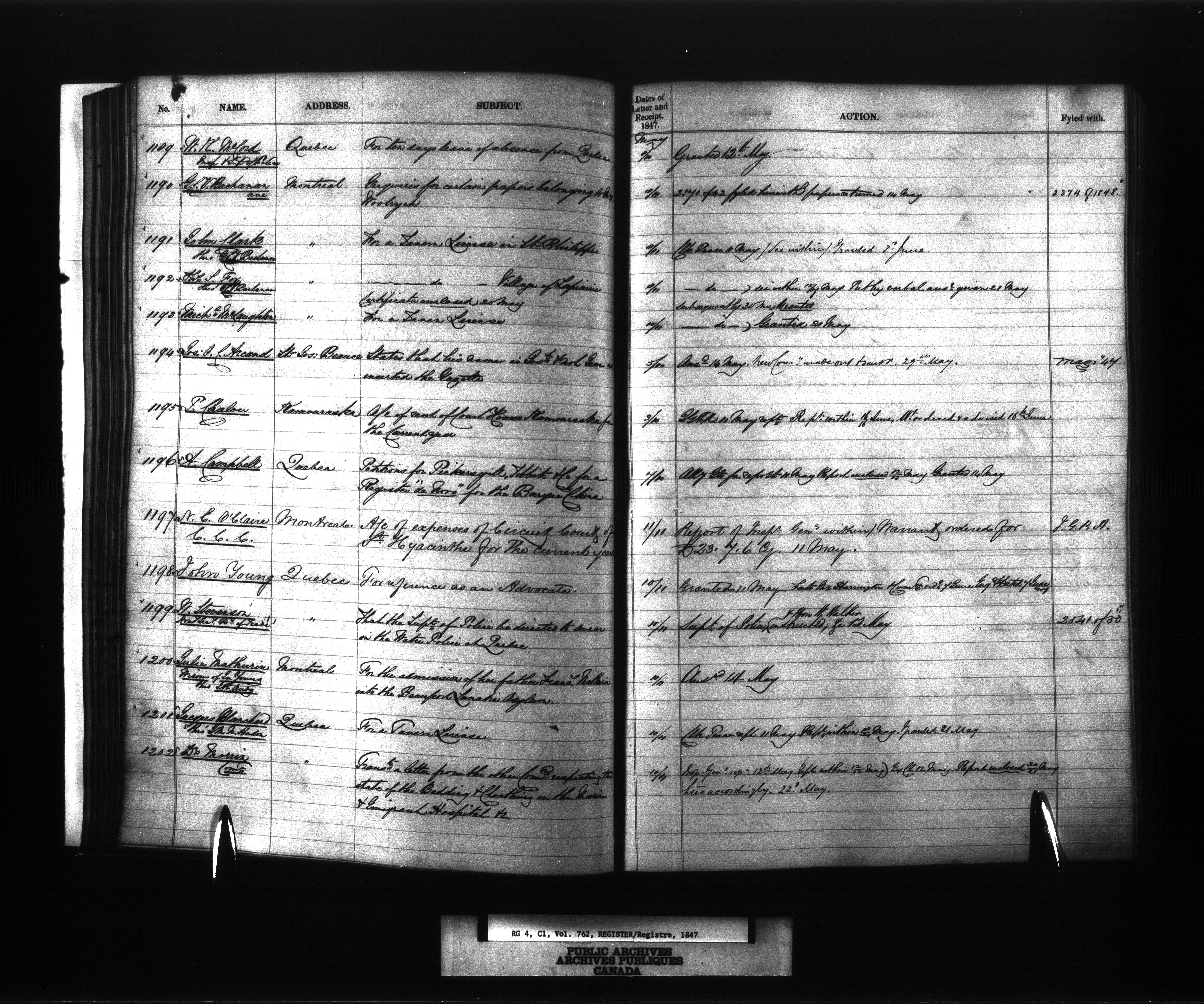 Provincial Secretary numbered correspondence files, Canada East : Registers and Indexes, 1839-1867 - 7734