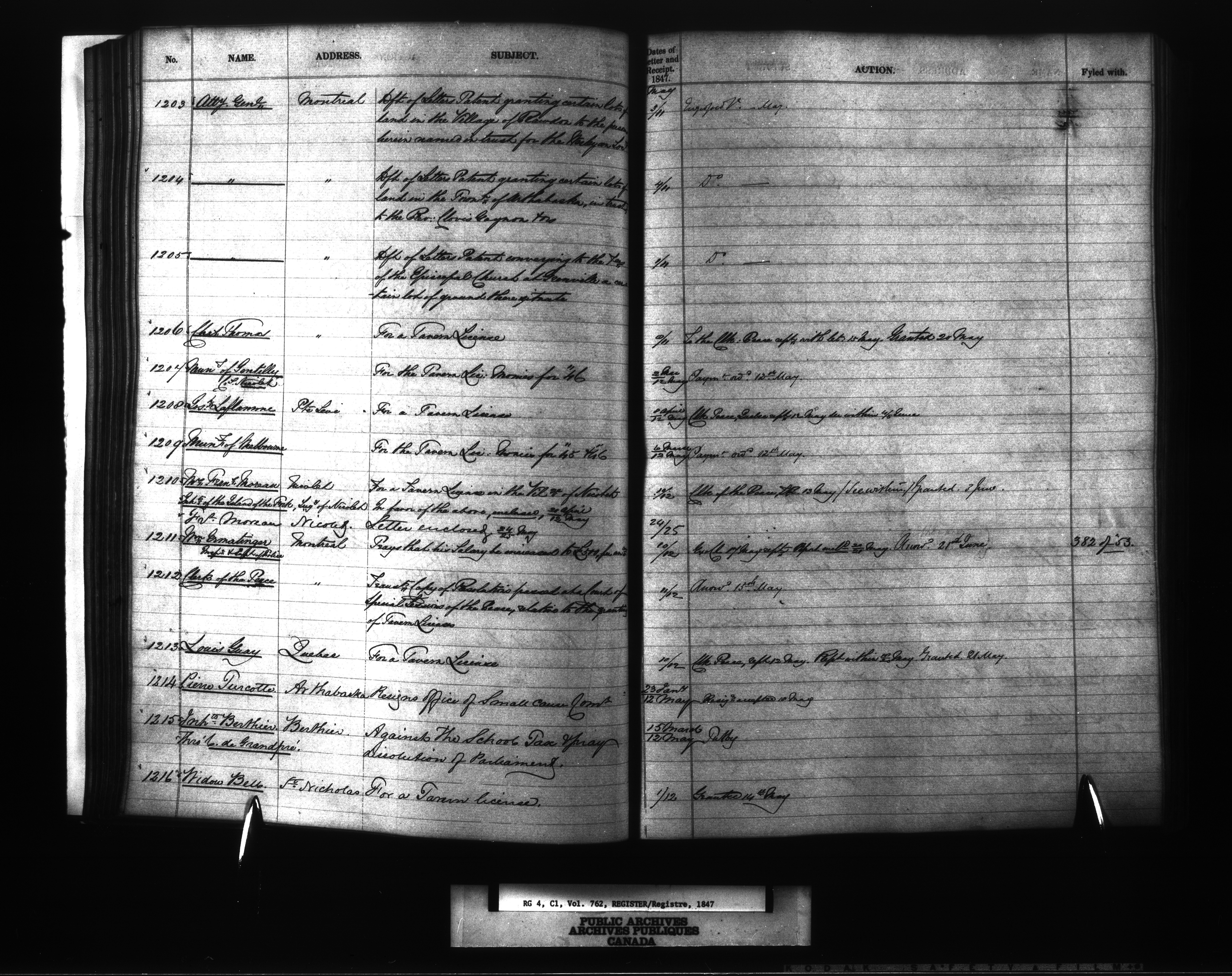 Provincial Secretary numbered correspondence files, Canada East : Registers and Indexes, 1839-1867 - 7734