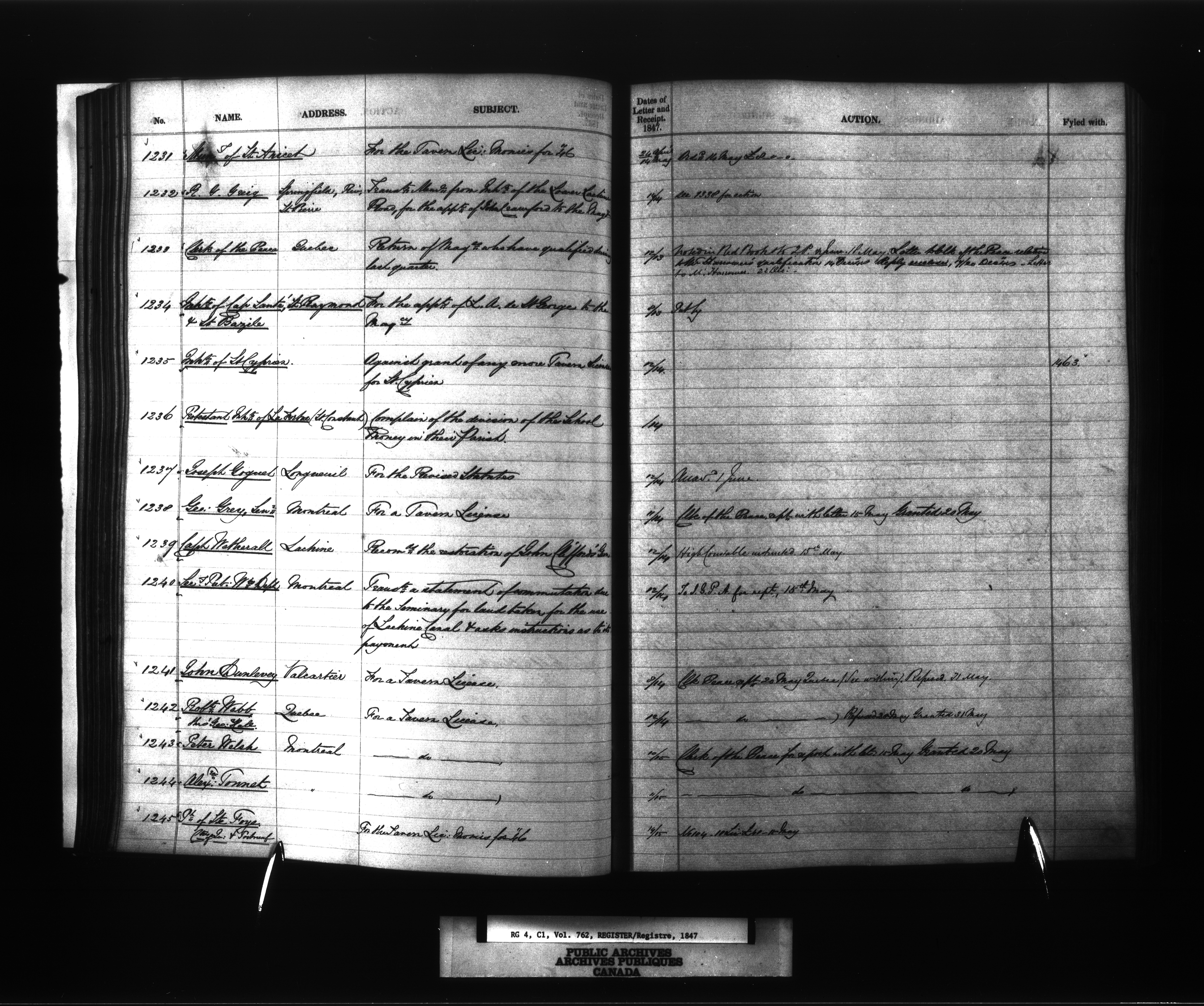 Provincial Secretary numbered correspondence files, Canada East : Registers and Indexes, 1839-1867 - 7734
