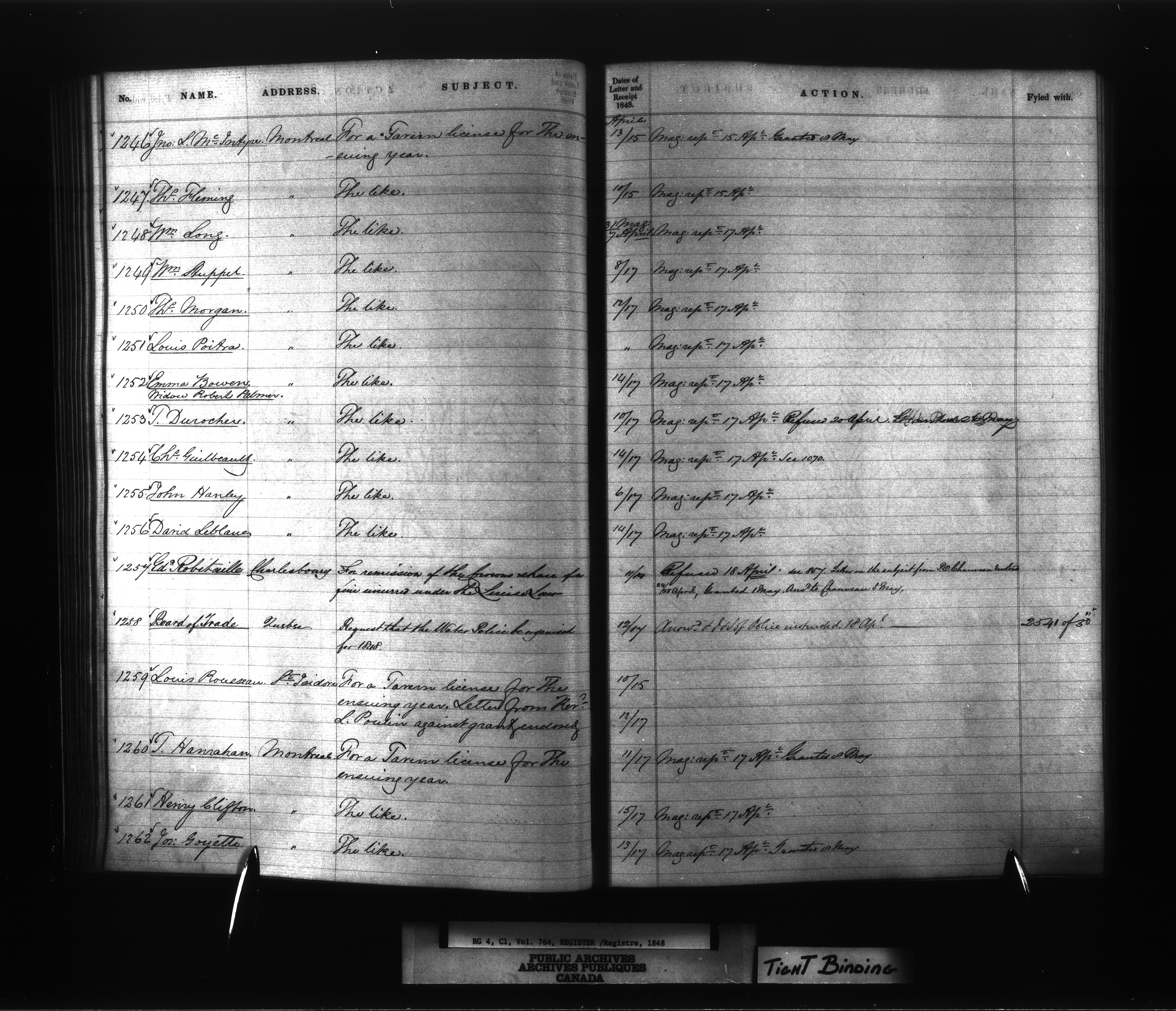 Provincial Secretary numbered correspondence files, Canada East : Registers and Indexes, 1839-1867 - 7734