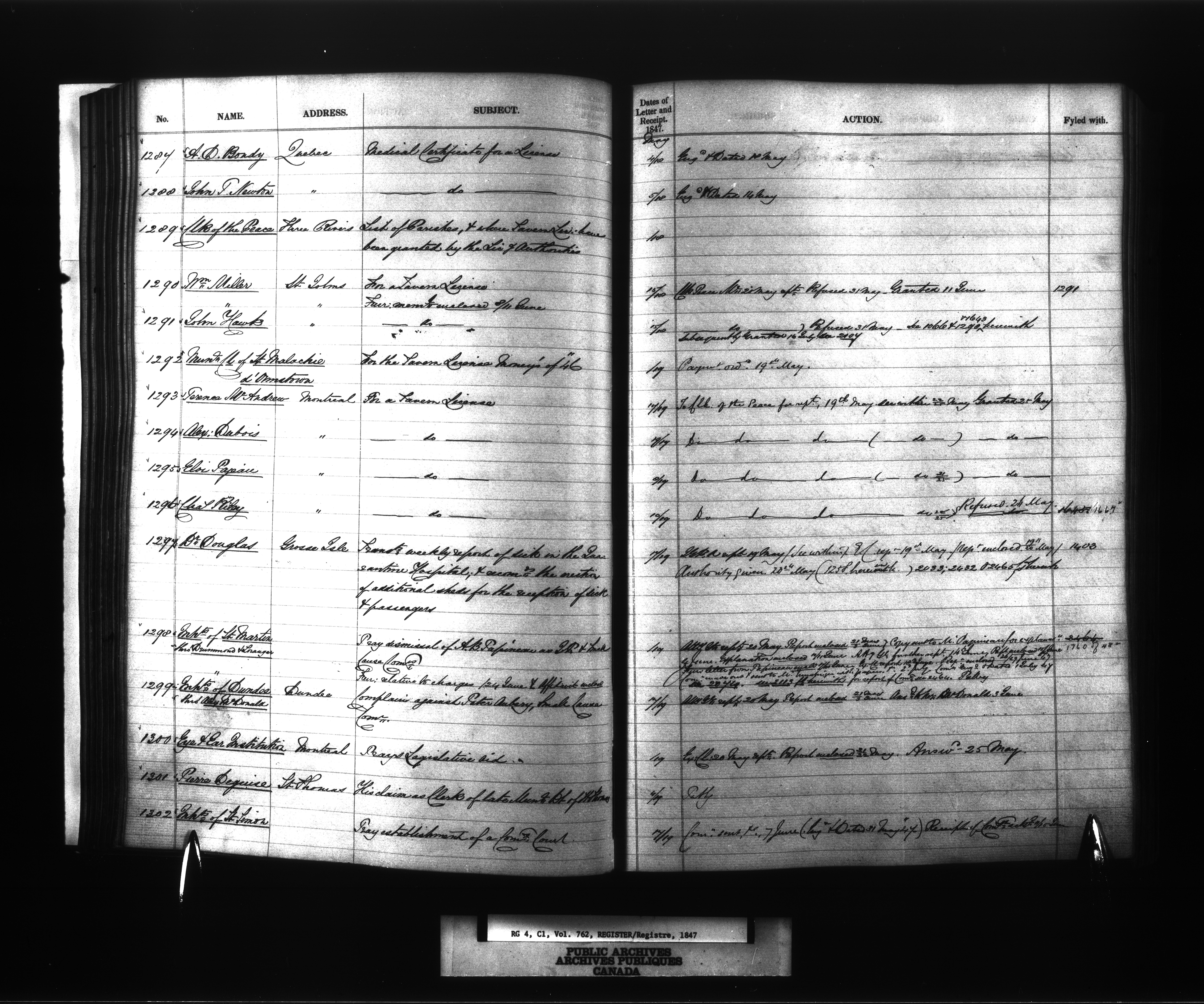 Provincial Secretary numbered correspondence files, Canada East : Registers and Indexes, 1839-1867 - 7734