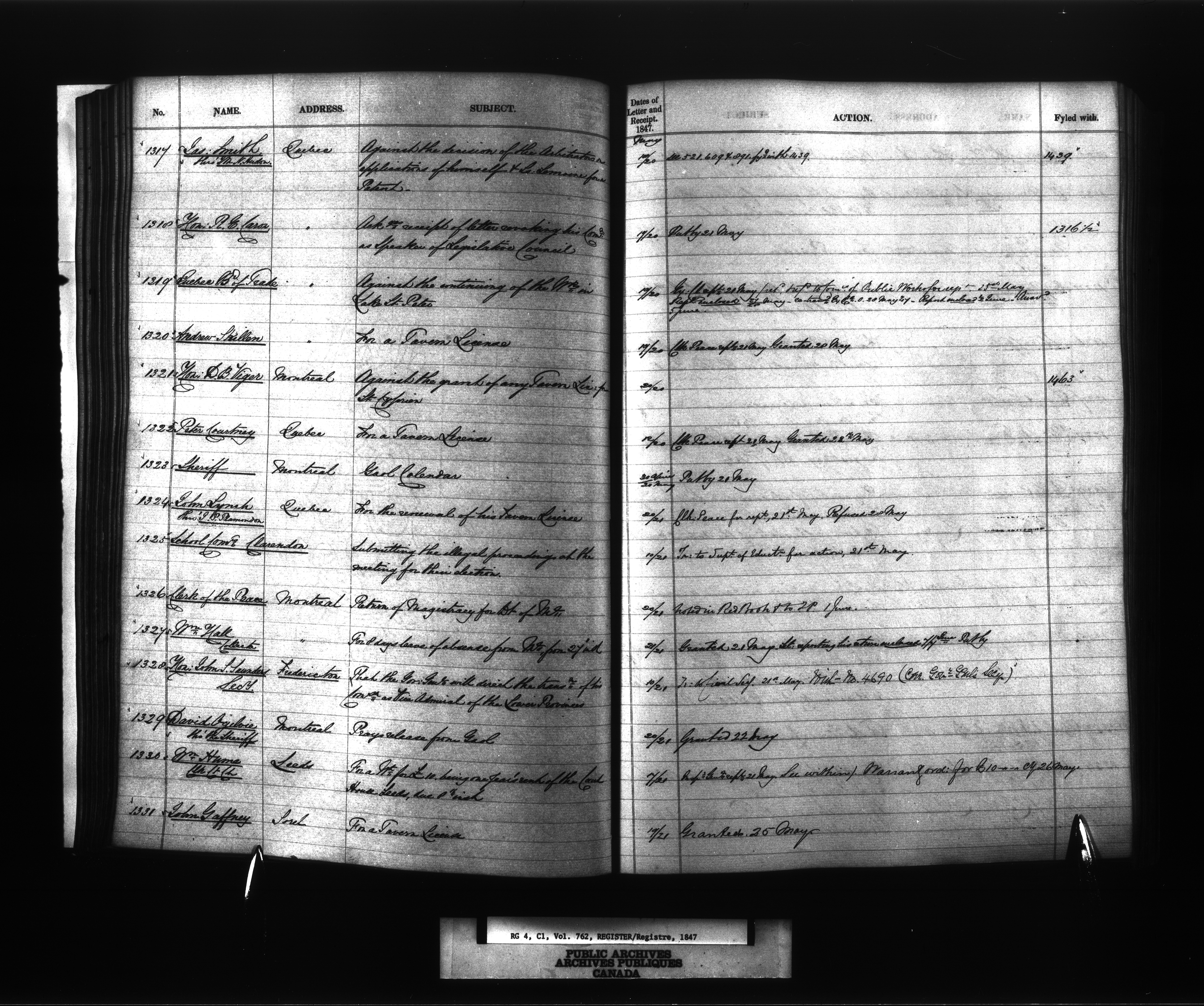 Provincial Secretary numbered correspondence files, Canada East : Registers and Indexes, 1839-1867 - 7734