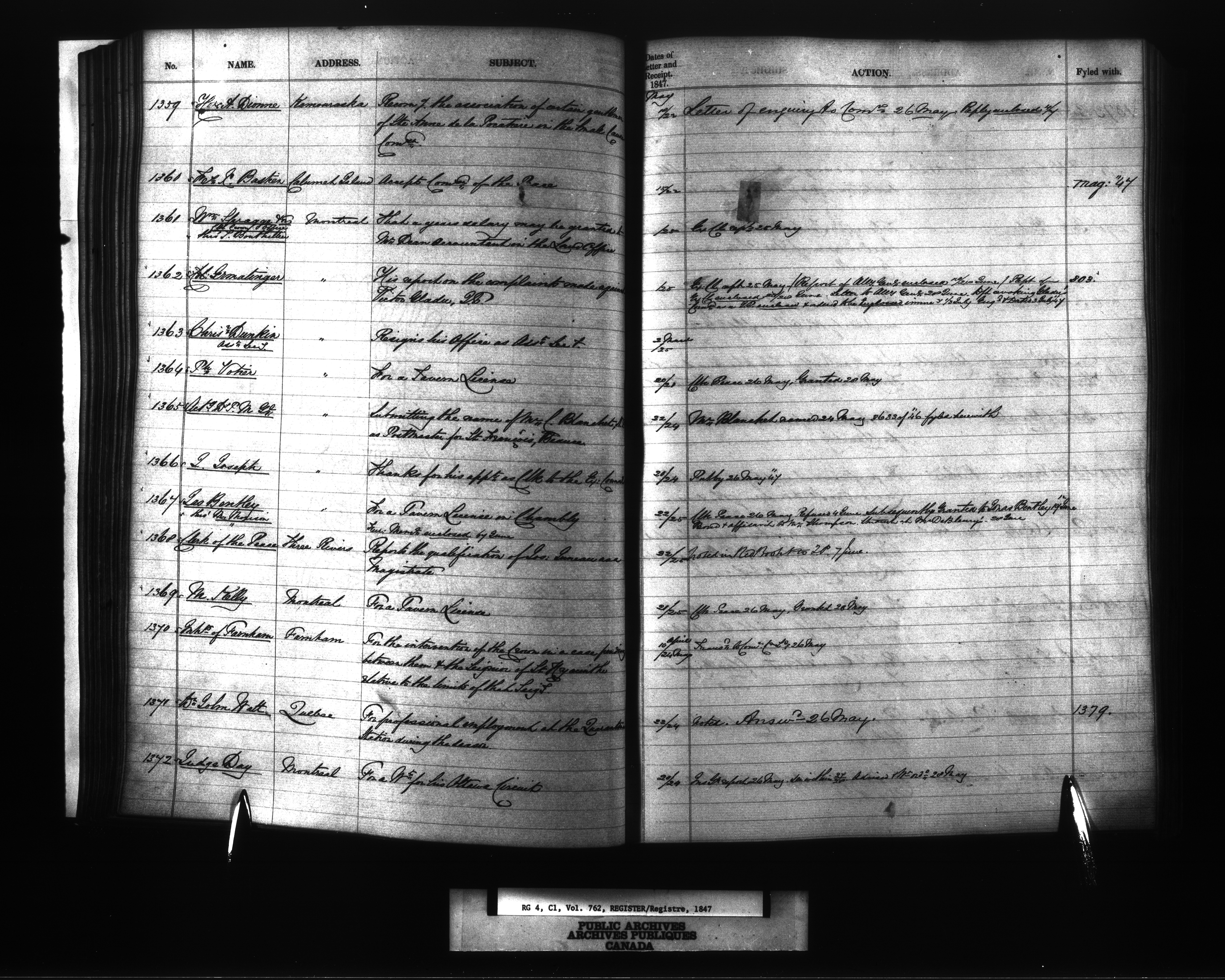 Provincial Secretary numbered correspondence files, Canada East : Registers and Indexes, 1839-1867 - 7734
