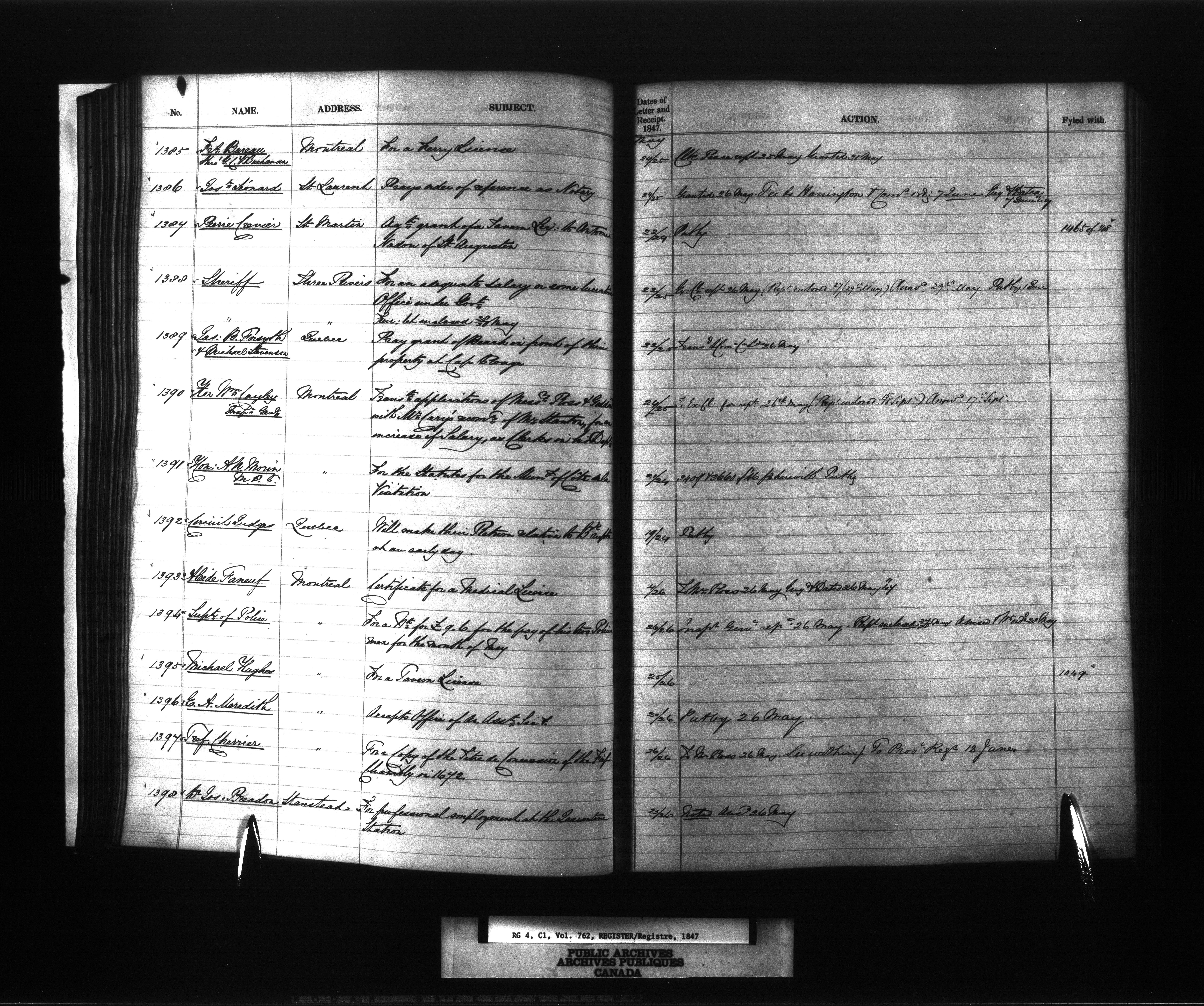 Provincial Secretary numbered correspondence files, Canada East : Registers and Indexes, 1839-1867 - 7734