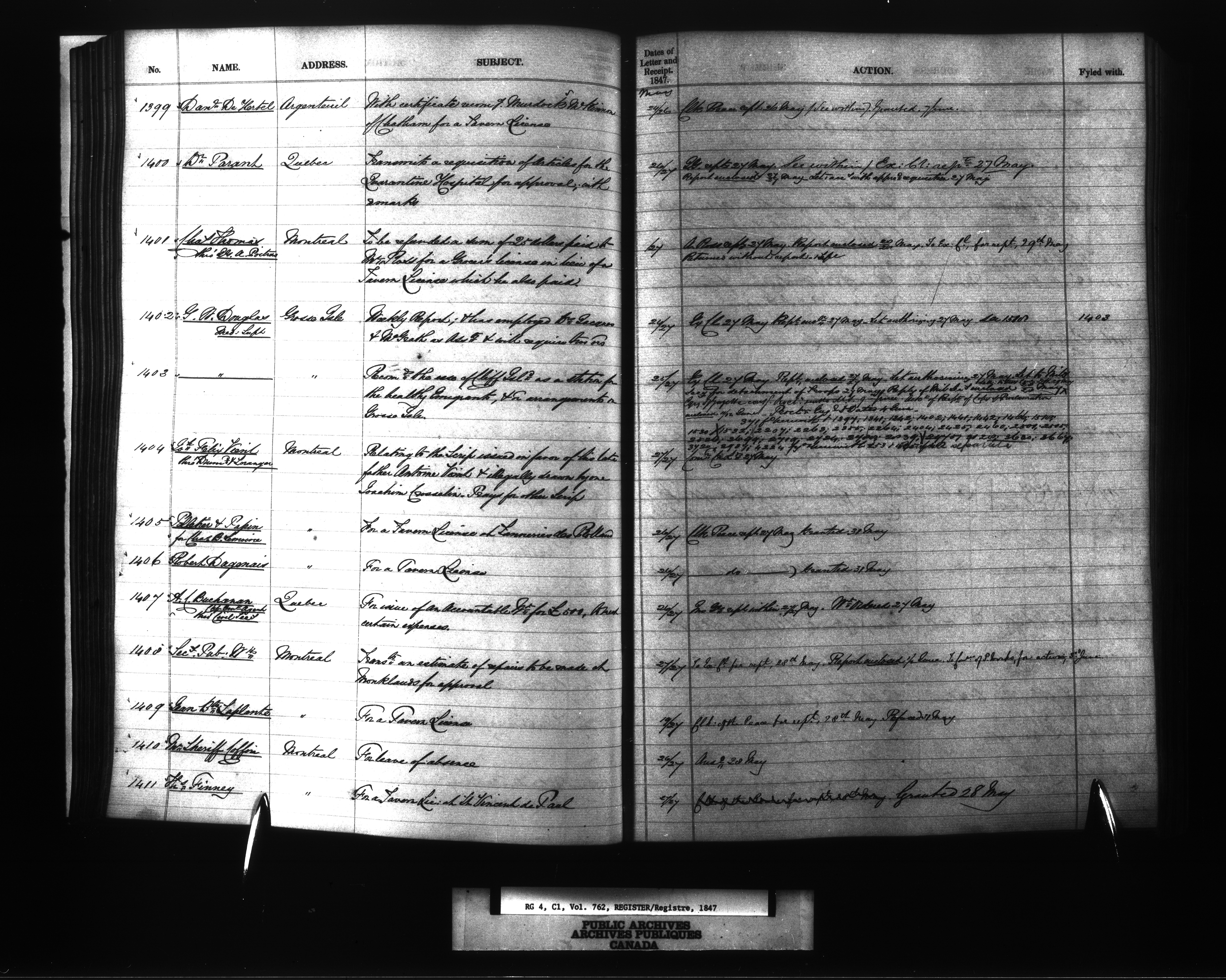 Provincial Secretary numbered correspondence files, Canada East : Registers and Indexes, 1839-1867 - 7734