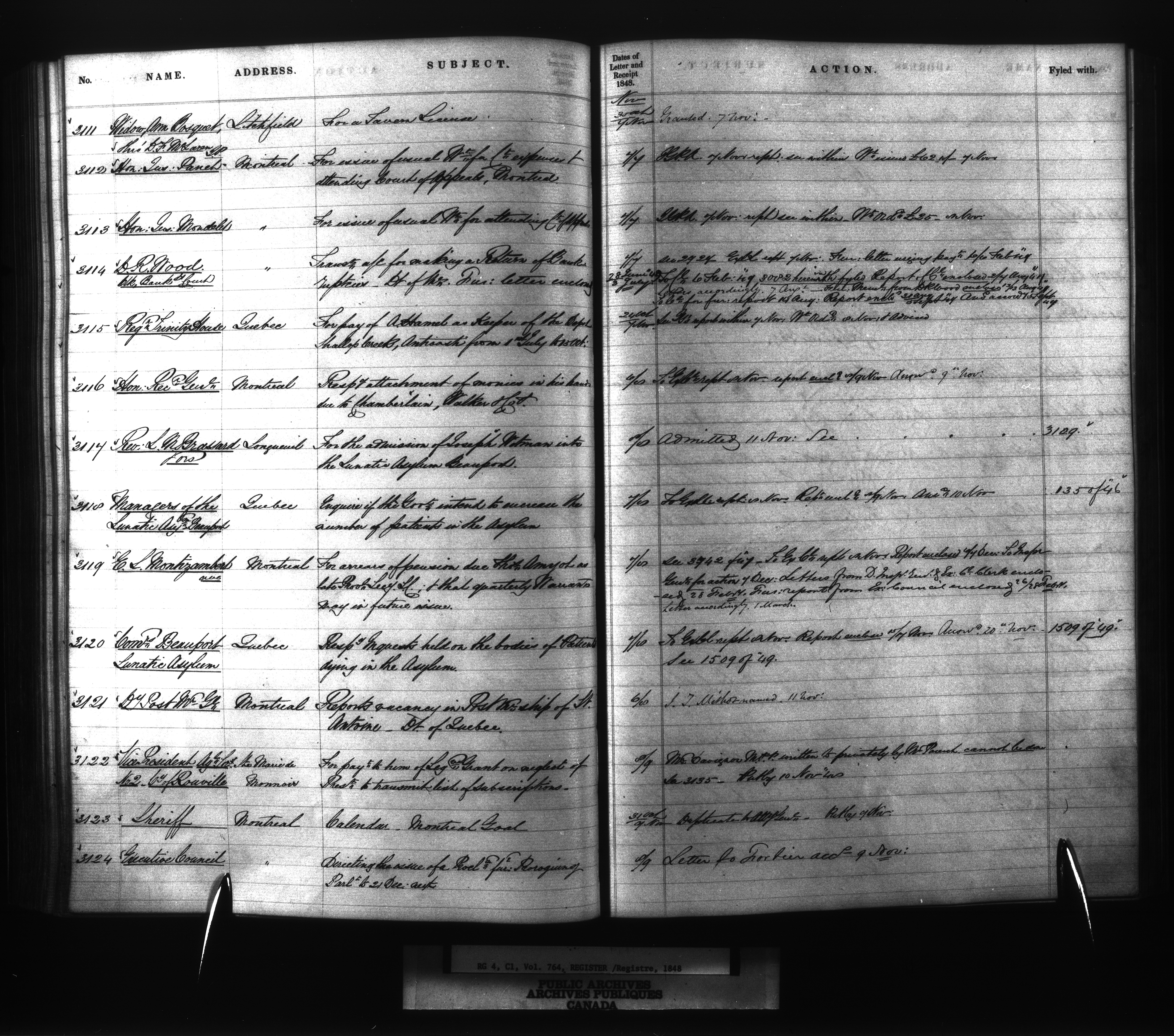 Provincial Secretary numbered correspondence files, Canada East : Registers and Indexes, 1839-1867 - 7735