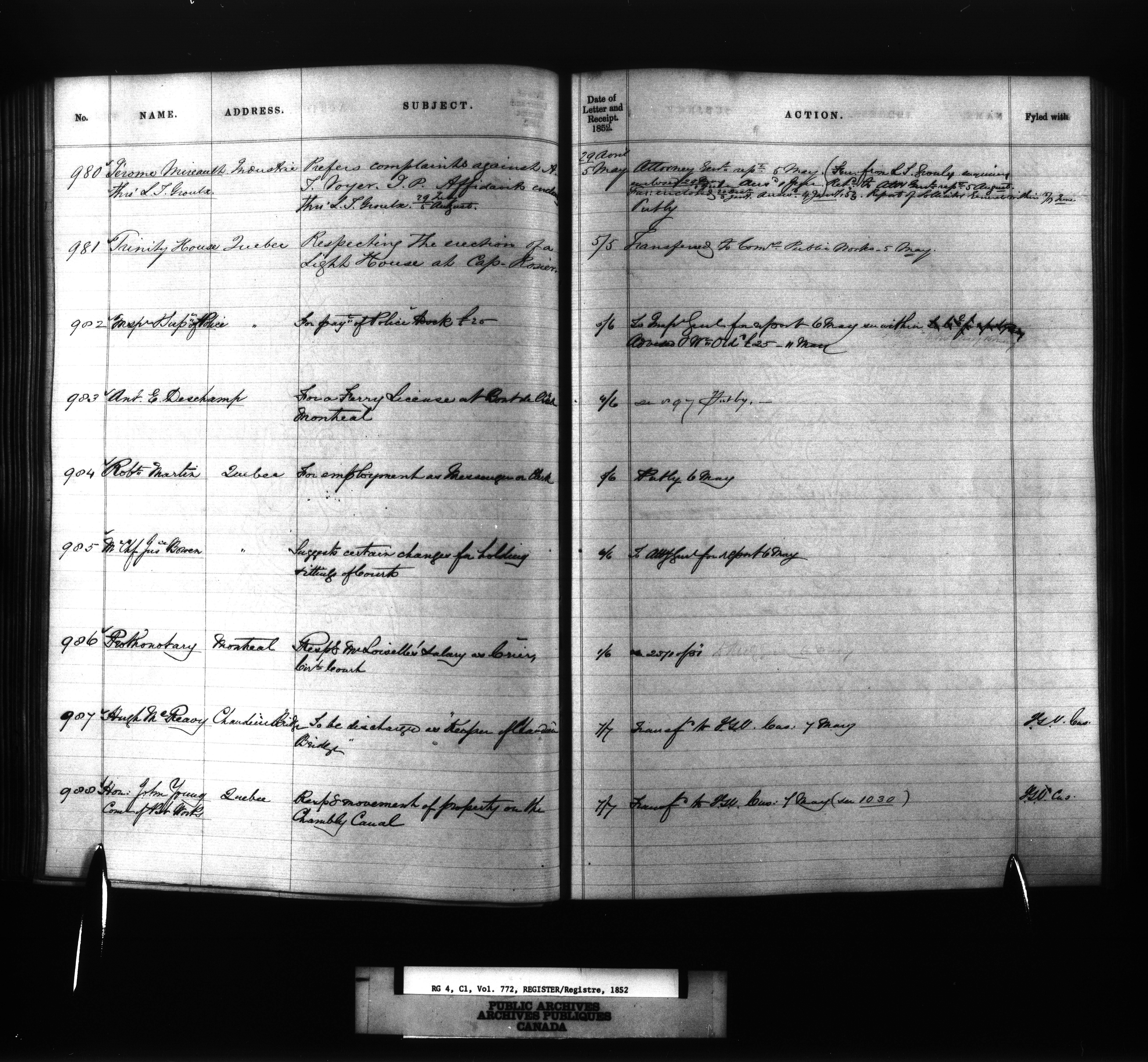 Provincial Secretary numbered correspondence files, Canada East : Registers and Indexes, 1839-1867 - 7737