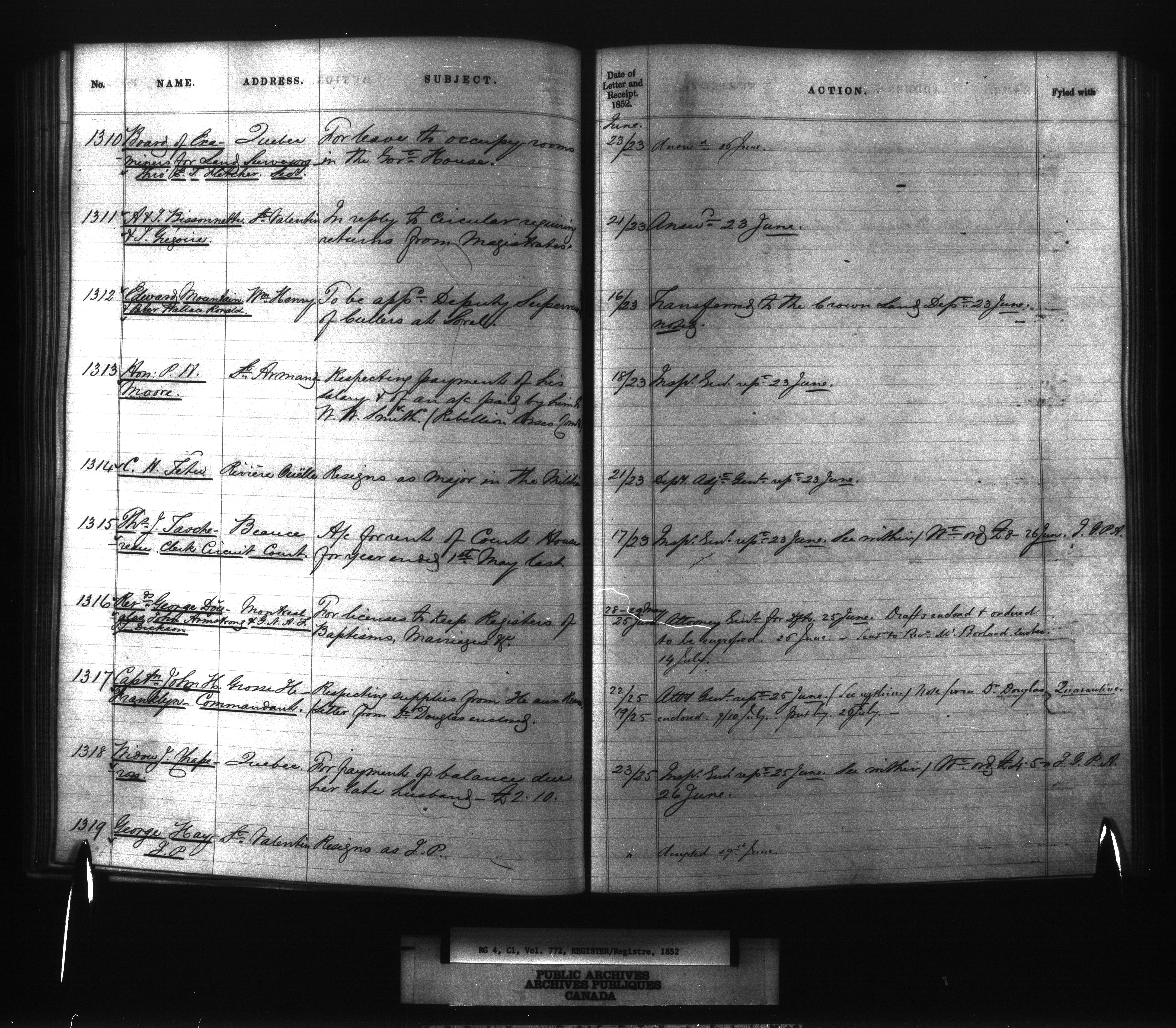 Provincial Secretary numbered correspondence files, Canada East : Registers and Indexes, 1839-1867 - 7738