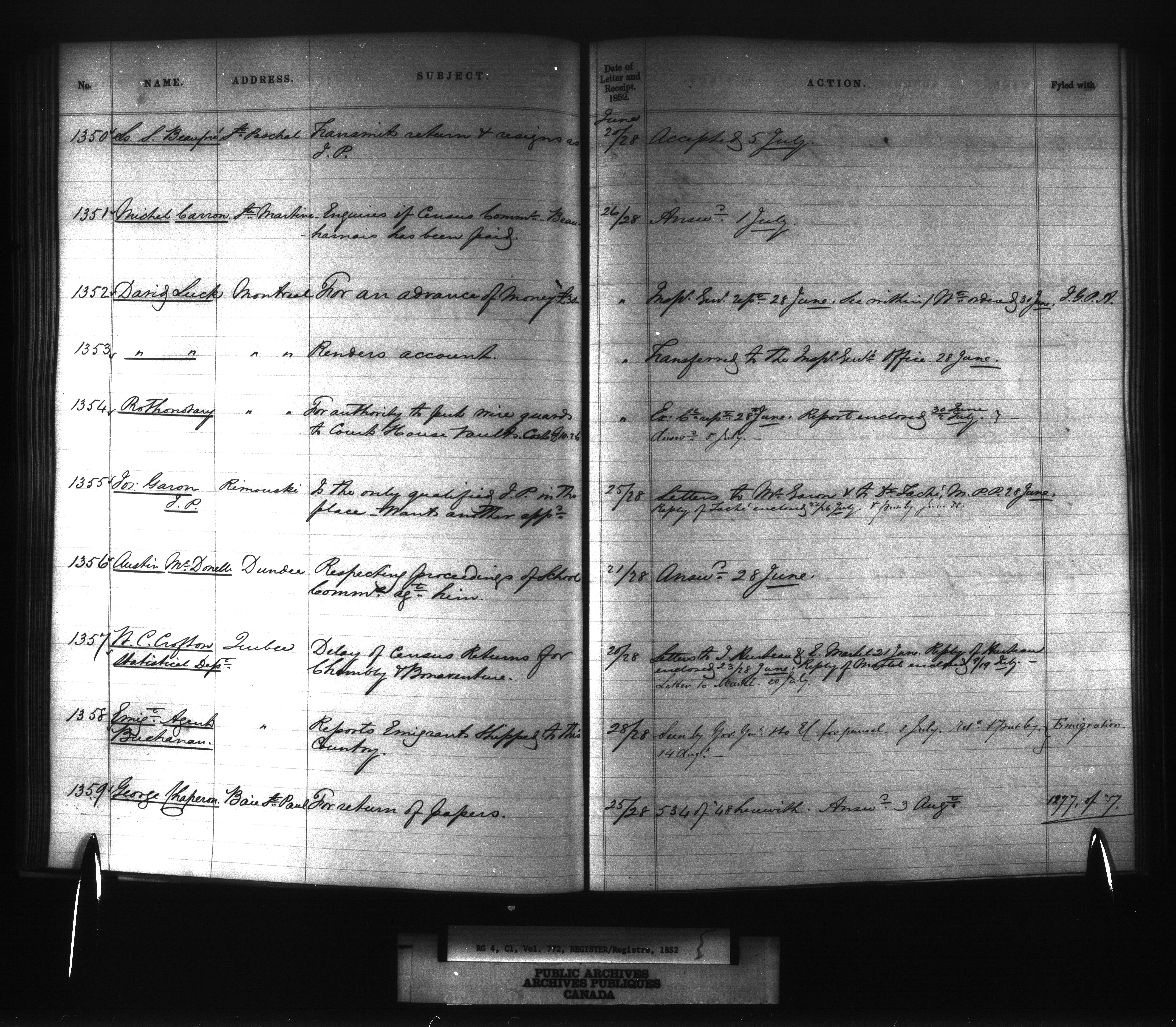 Provincial Secretary numbered correspondence files, Canada East : Registers and Indexes, 1839-1867 - 7738