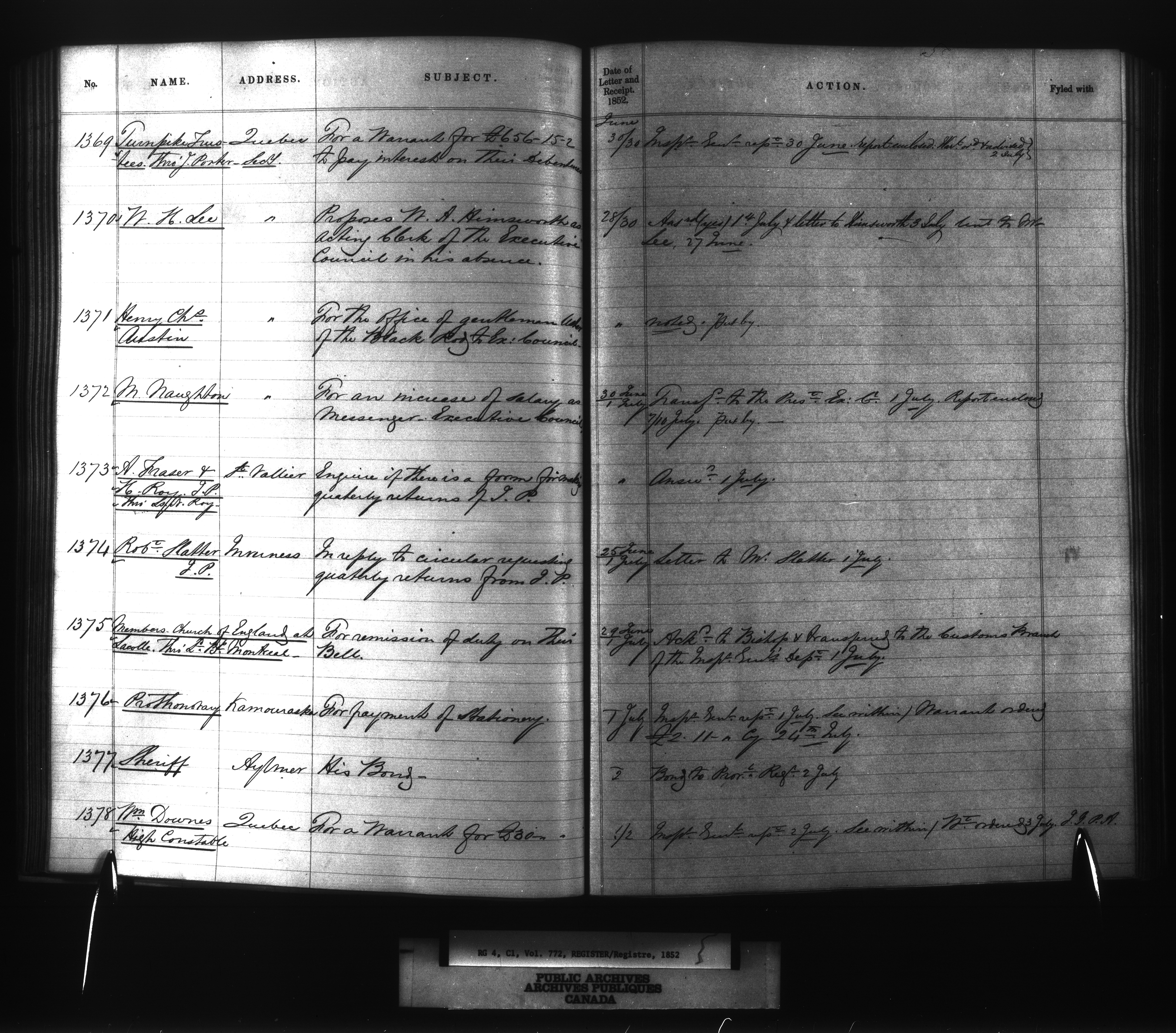 Provincial Secretary numbered correspondence files, Canada East : Registers and Indexes, 1839-1867 - 7738
