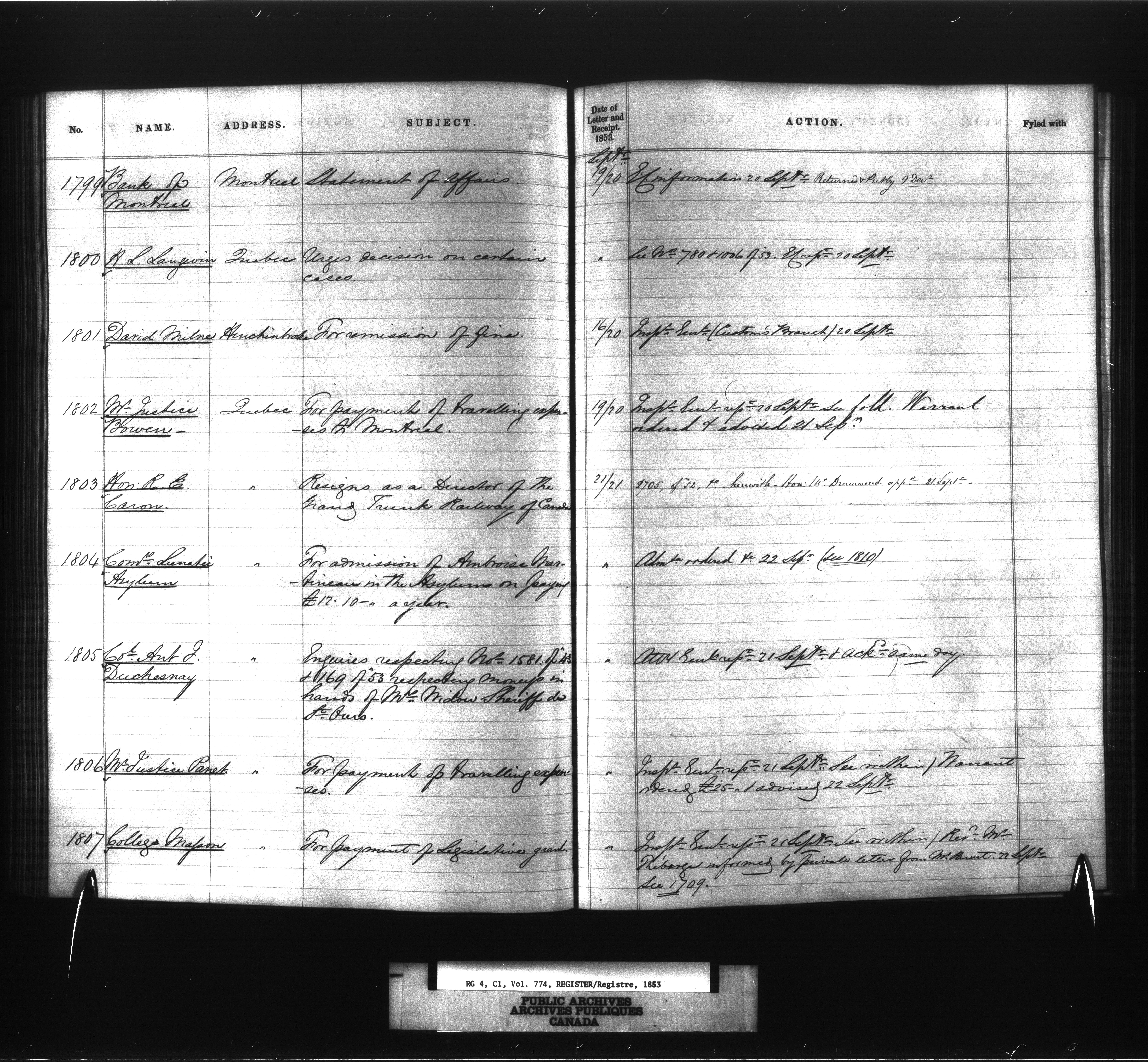 Provincial Secretary numbered correspondence files, Canada East : Registers and Indexes, 1839-1867 - 7738